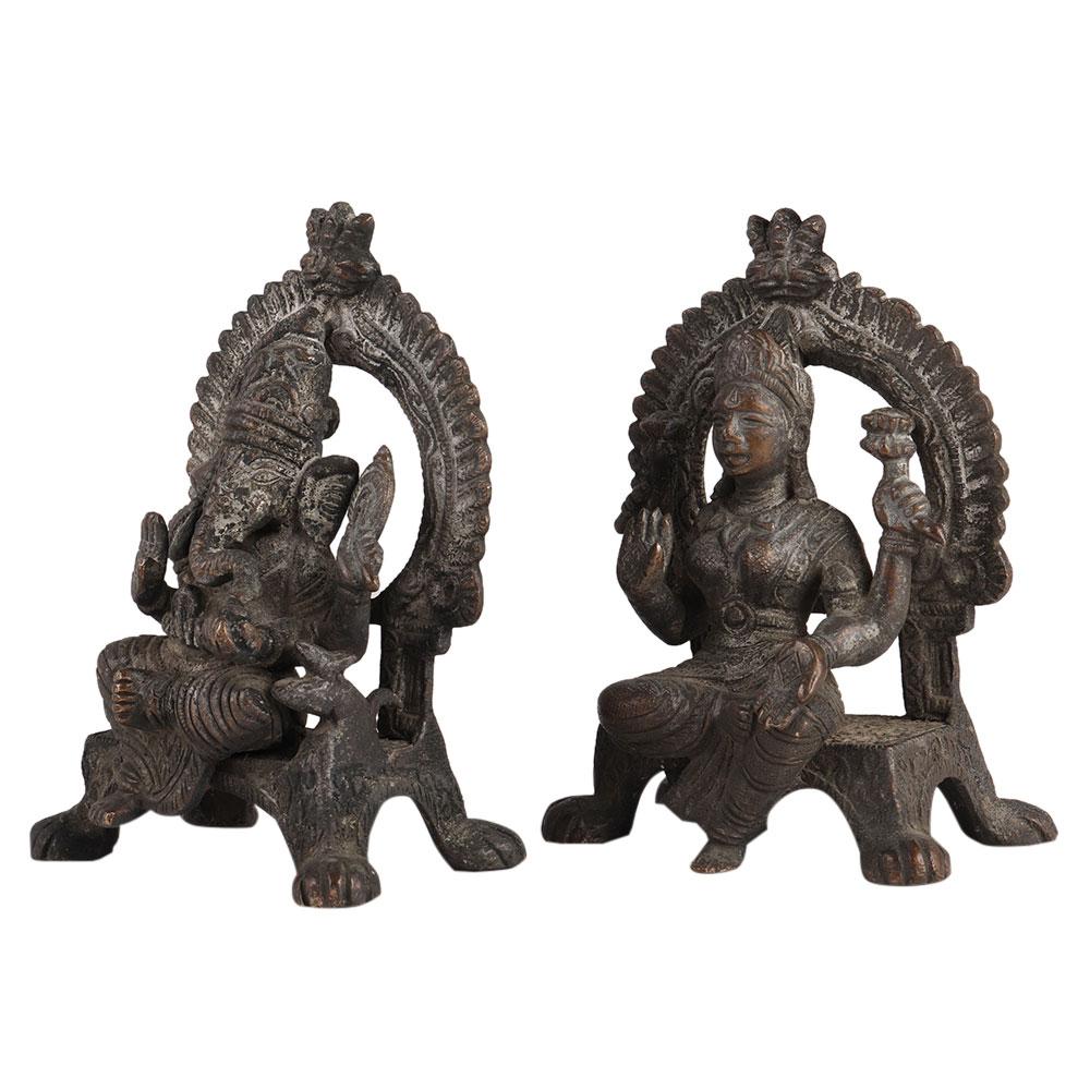 • Brass Laxmi Ganesha Sitting Statue In Pair