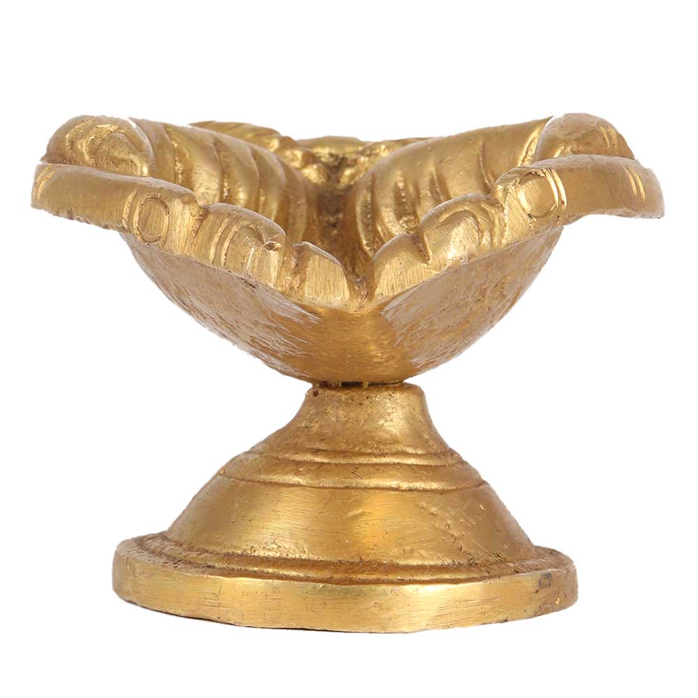 These high-quality brass oil lamps handcrafted by Indian artisans are an excellent return gift for housewarmings, wedding ceremonies, pooja functions, Diwali parties, chaturthi, and Durga puja. Diya for conducting worship and aarti, or for Hindu interior decorating. In the late afternoon, light your home Temple mandir with this ghee oil wick diya lamp.