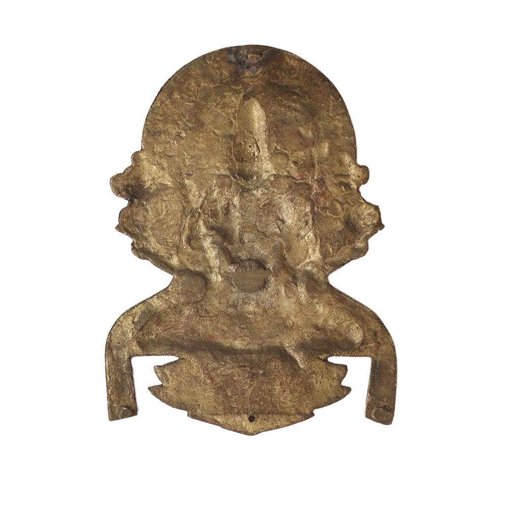 This is an antique Hindu Goddess Lakshmi plate. Since the pre-Buddhist period, Goddess Lakshmi, also known as Sri Lakshmi, has been one of the most popular and widely worshiped goddesses in Hindu tradition. According to the first legend, Lakshmi was born as a result of Prajapati's penances, and she represents ten qualities and objects, including food, royal power, universal sovereignty, noble rank, power, holy brilliance, kingdom, fortune, bounteousness, and beauty.