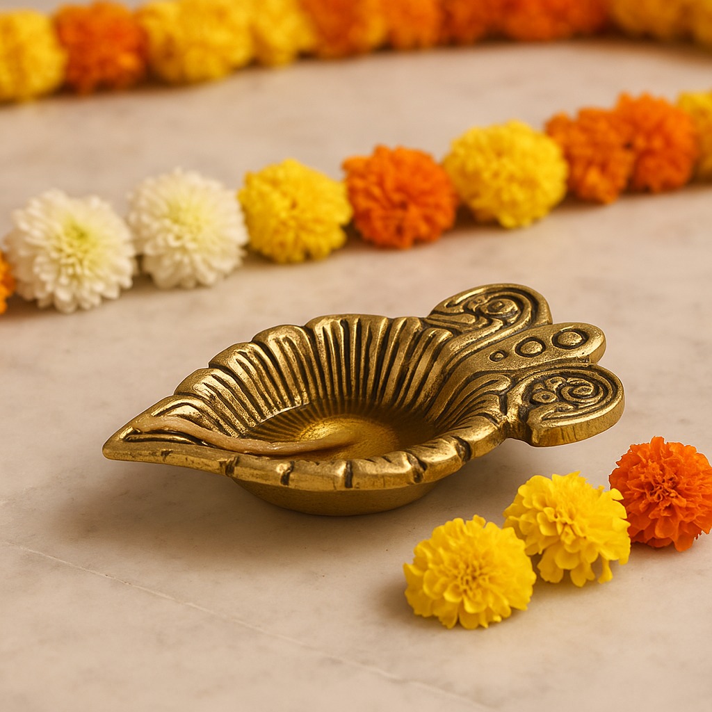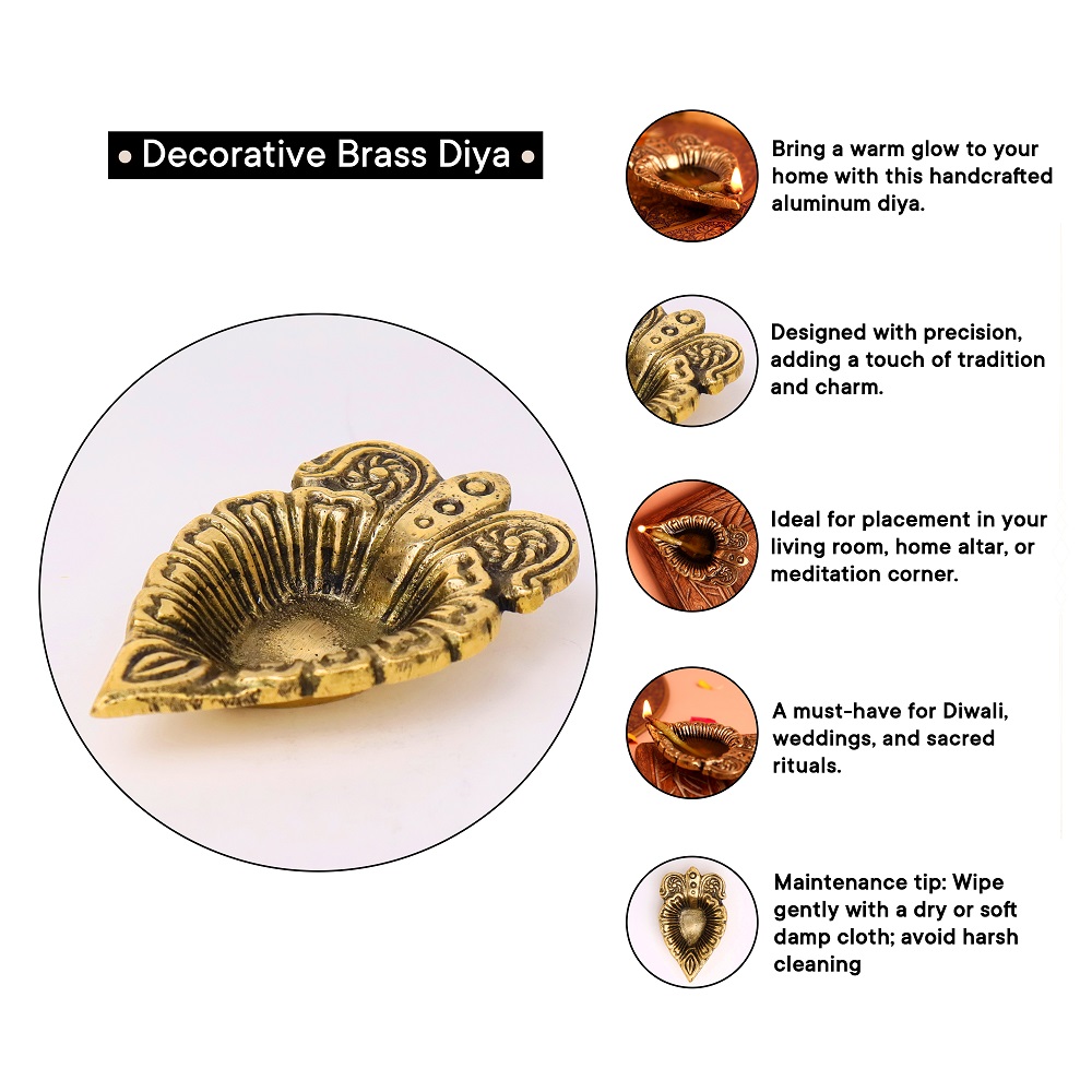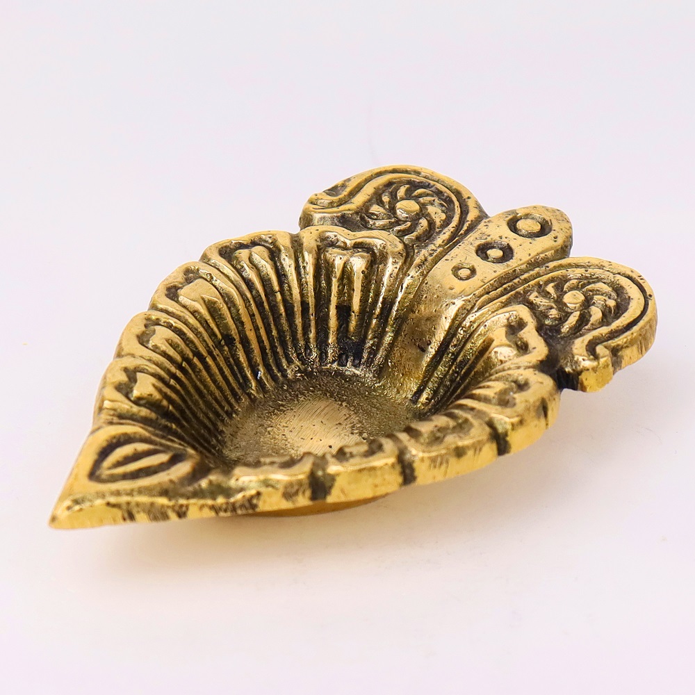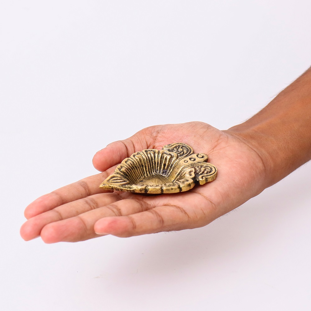 Illuminate your sacred rituals with the Brass Leaf Oil Lamp with Intricate Design, a diya that reflects the beauty of nature through its leaf-inspired artistry. Symbolizing growth, renewal, and divine energy, this diya adds elegance and auspicious charm to mandirs, puja thalis, and festive décor. The golden brass finish enhances its timeless appeal, making it a perfect blend of function and tradition.