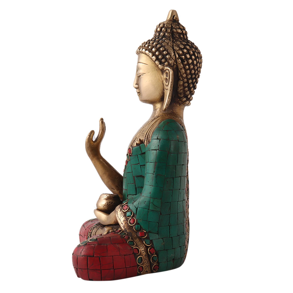 Exotic brass statue of Lord Buddha preaching his dharma. This brass statue is efficiently carved from brass with hands to provide a remarkable design. Place this statue in your meditation or prayer room to bring peace and tranquilly to your life. It spreads positive and relaxing energy that helps people focus better during meditation and work. Display this decorative piece to enhance the interior of your home, office, hotel or restaurant. Give it as a gift to your loved ones on special or festive occasions.