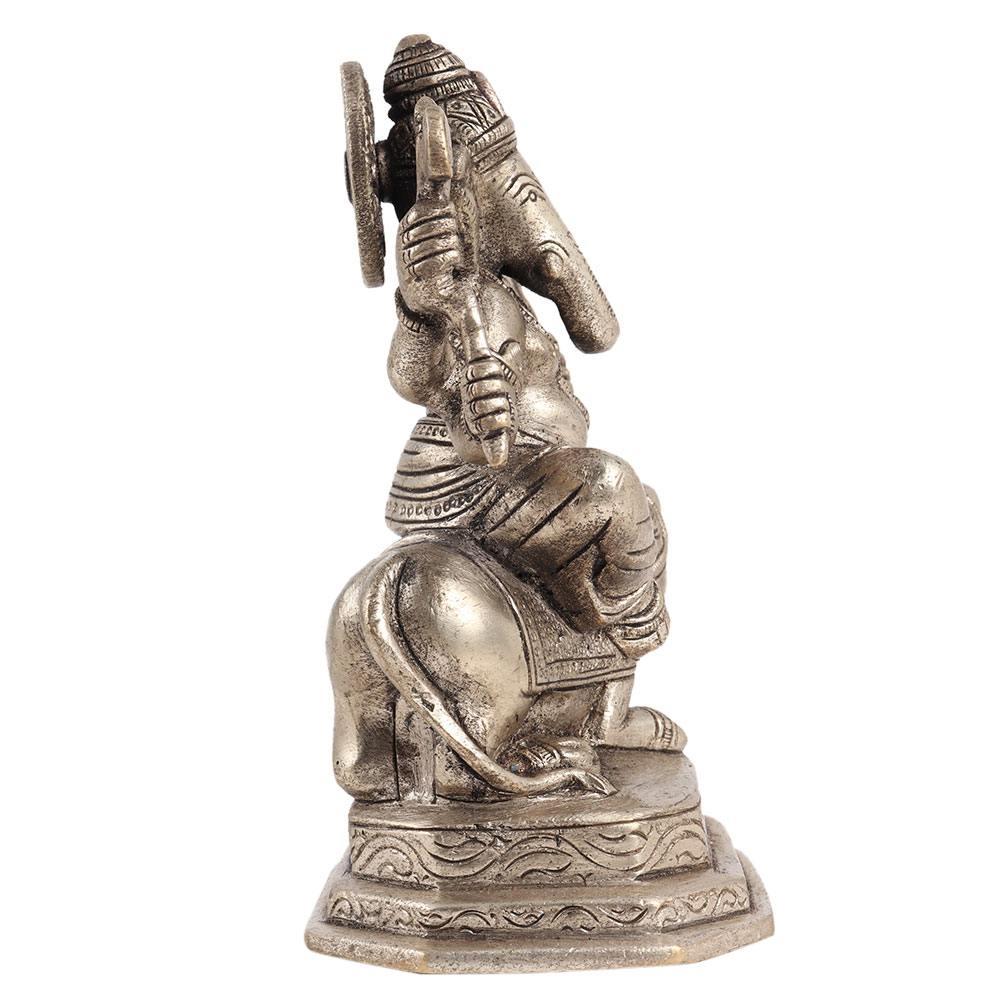 Brass Lord Ganesh Statue Sitting On Mushak Vahan