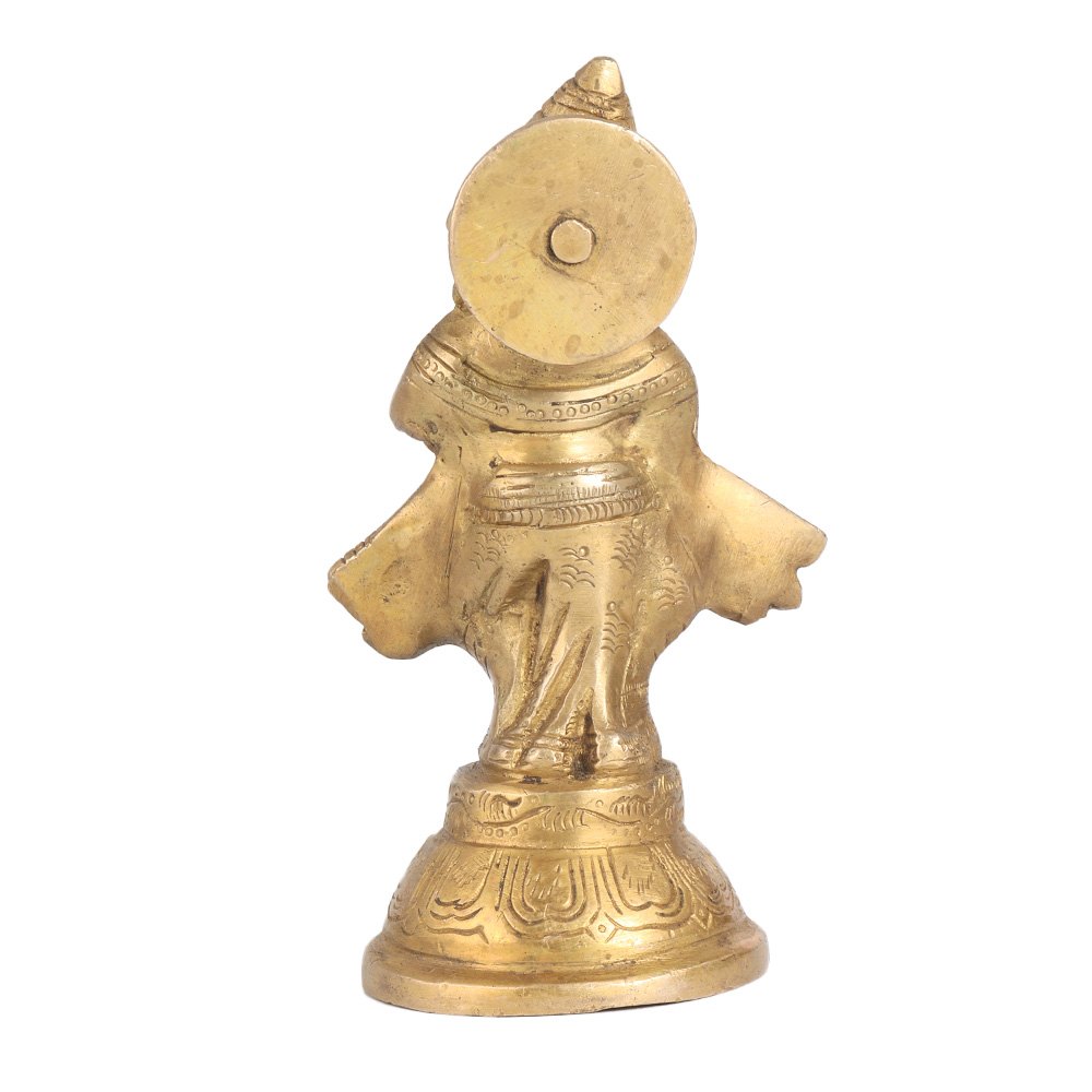 This brass statue of Lord Ganesha is a beautiful depiction of the Hindu God, renowned for his wisdom, intellect, and love of music. In this statue, Lord Ganesha is shown playing the harmonium, a popular Indian musical instrument. The statue's golden finish adds to its beauty and radiates a sense of positivity and warmth. The statue is ideal for placing in prayer rooms at home, office, restaurant, hotel, or gym, creating a peaceful and calming environment. Lord Ganesha is believed to be the remover of obstacles and is revered by Hindus all over the world. The statue's intricate detailing and expert craftsmanship make it a valuable and remarkable piece of art, sure to inspire and uplift anyone who sees it. Gift it your loved ones on special, festive and auspicious occasions.
