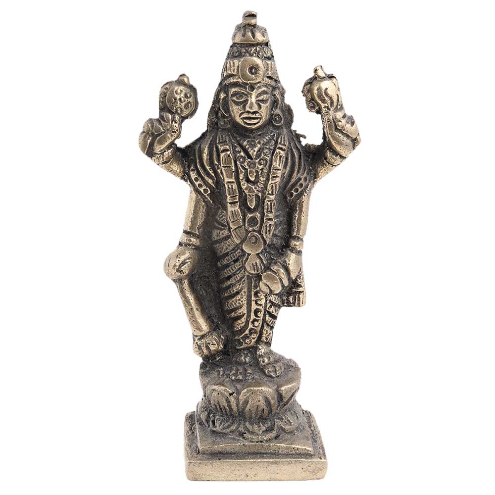 Brass Lord Jaganath Vishnu Statue carrying weapon in on hand and standing on a lotus base. It is made by skilled artisans of India using traditional methods. Perfect and Holy Accessory for Home Decor, You Can Place These Statues in Your Kitchen, Bedrooms or Living Rooms, Diwali gift, New year