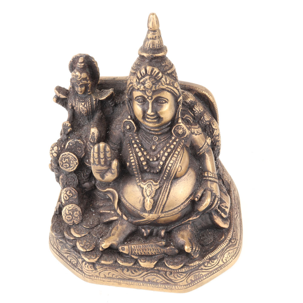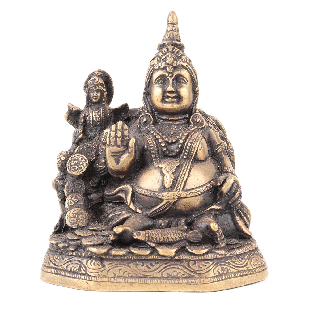 Presenting hand crafted brass lord of wealth Kuber and goddess laxmi denotes wealth, money and success in business as well as acquisition and accumulation of wealth. A great home decoration and gifting statue.