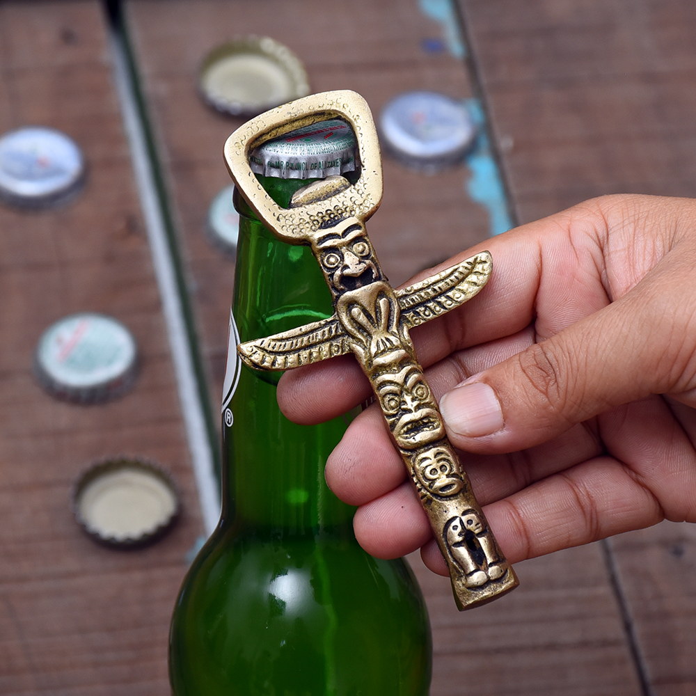 A unique tribal Style brass bottle opener has a unique shape and design . The design is a solid brass mayman and is the perfect addition to a rustic or nautical theme kitchen or bar area .Convenient to carry while travelling and ideal gift for your friends and family.