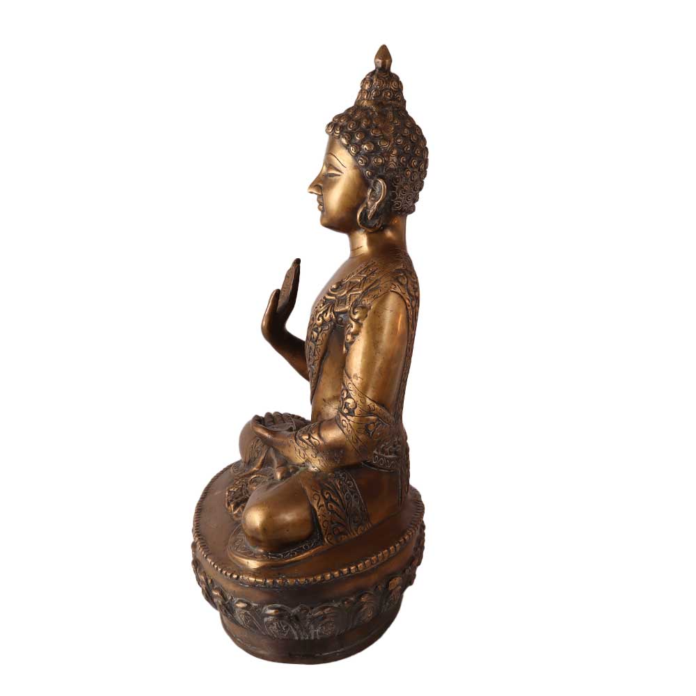 A meditating Buddha statue is a representation of the Buddha, the founder of Buddhism, in a seated position with his legs crossed and hands resting on his knees. The gautam buddha statue for home statue is typically made of bronze, stone, or wood, and is often decorated with intricate designs and symbols. The statue depicts the Buddha in a state of meditation, which is a central practice in Buddhism. The statue represents the Buddha's attainment of enlightenment and serves as a reminder for followers to strive for the same state of inner peace and understanding. The statue can be placed in a temple, shrine, or personal space as a focal point for meditation and spiritual reflection. It can also be used as a decorative piece to enhance the aesthetic of a room or garden. The bronze Buddha statue can come in various sizes, from small to large, and can be traditional or modern in style.