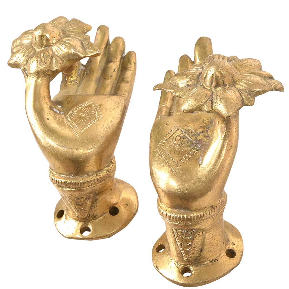 Vintage Reproduction Buddha's Blessing Hand in Vitraka Mudra Wall Haning Sculpture this Listing is for a Pair of Handmade Brass Buddha Hands Wall Hanging/ Door Handle the Hands can be used as Wall Hanging or Door Handle Please Have a Look Unique and Collectible Door Handle / Wall Sculpture for Decor Your Home or Office You can Fix that Blessing of Buddha on Your Wall or can Use for Door Handle Buddha Spread Blessing in Your Home You can also Gift Blessing Buddha Hand to Your Friends or Family. Ideal for Drawer, Dresser, Cabinet, Wardrobe, Cupboard and Almirah.