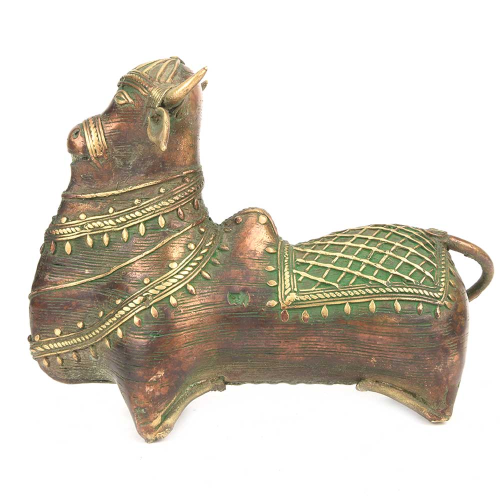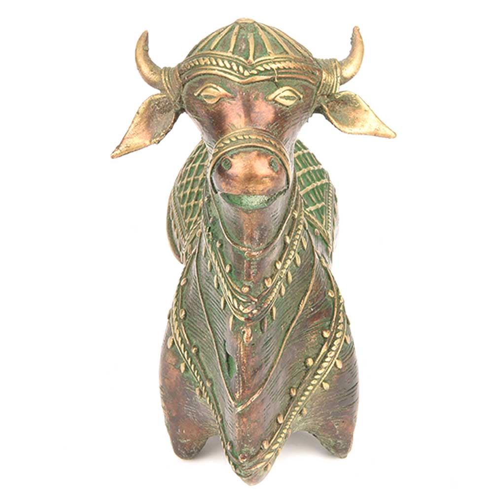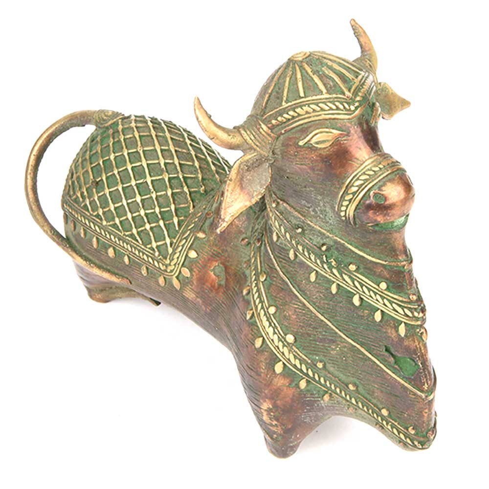 Brass Nandi Bull Sitting Statue.