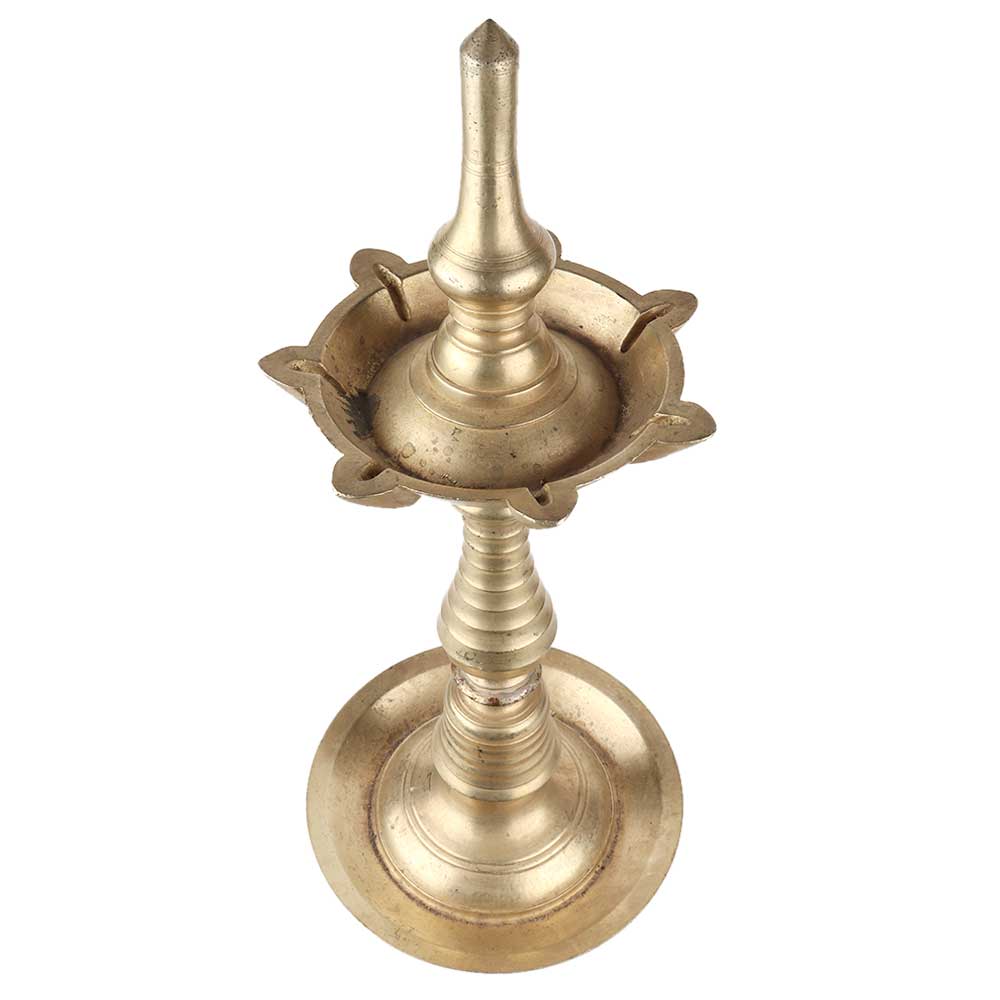 South Indian Brass Oil Lamp. It is Made by Lost Wax Process. Adds Spiritual Flavor to Your Decor. Vegetable Oil, Mustard Oil or Desi Ghee can be Use to Light the Lamp with Cotton Wicks.