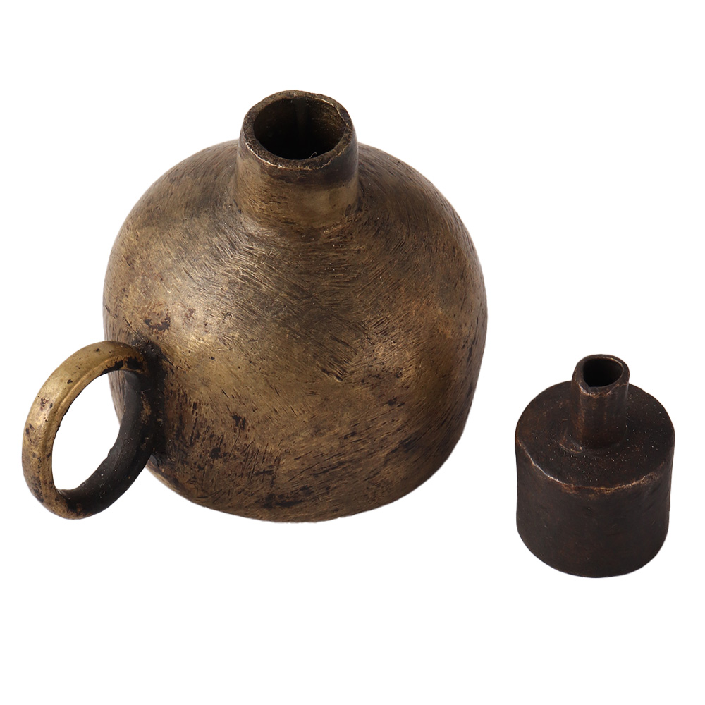 A Handmade Brown Brass lifestyle Kerosene Oil Lamp is a type of oil lamp that is crafted by hand and made of brown brass, which is a unique and antique finish of metal. These lamps are powered by kerosene, and feature a wick that is inserted into the kerosene and lit to produce a flame. The flame is then adjusted to control the brightness of the light. The lamps often feature intricate designs and details such as engravings, filigree, and glass shades, which give them an elegant and vintage aesthetic and often used as artifact. They are considered as a decorative piece or home decoration lamp and also a piece of history. They are often used as decorative pieces in homes and businesses, as well as for outdoor lighting in settings such as patios and gardens. They are also used in some rural areas where electricity is not yet available. The handmade aspect of the lamp makes it unique and one-of-a-kind.