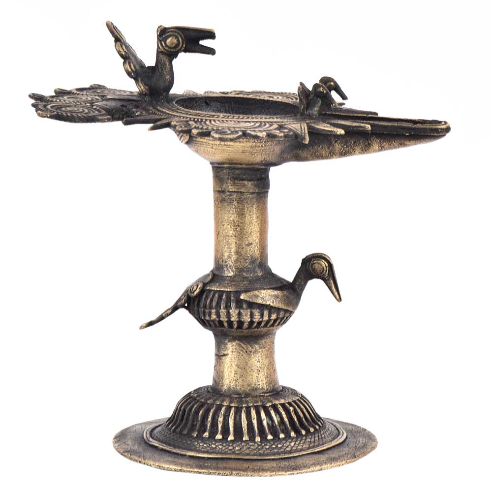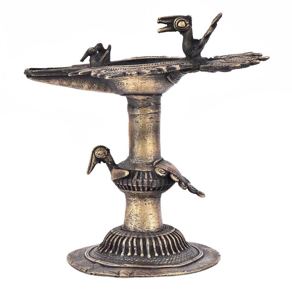 Brass Oil Lamp From Orissa Dhokra Work Bird Figurines