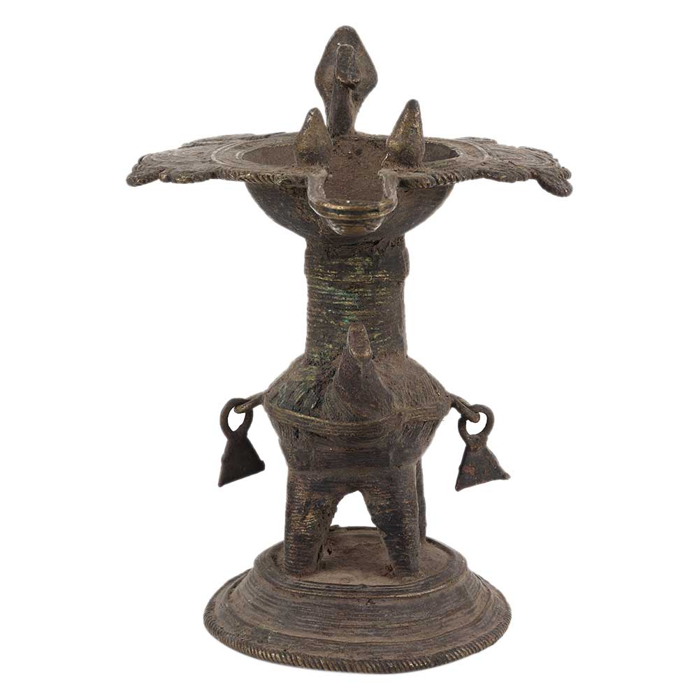 Traditionally made brass oil lamp from Orissa with bird figurines with a big oil lamp or diya made by the local craftsmen adds spiritual flavor to you decor. Vegetable Oil, Mustard Oil or Desi Ghee can be Use to Light the Lamp with Cotton Wicks.