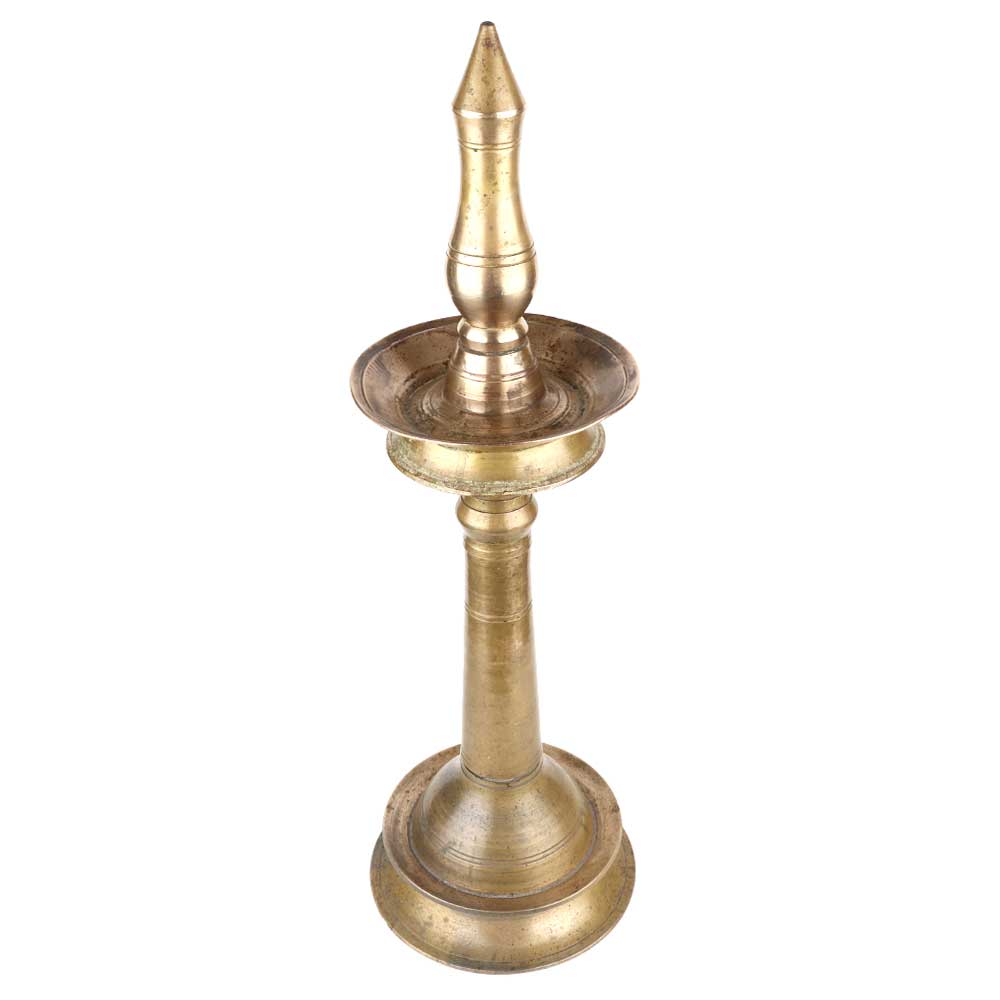 Kerala Nilavilakku Brass Oil Lamp. It Was Made by Lost Wax Process. Adds Spiritual Flavor to Your Decor. Vegetable Oil, Mustard Oil or Desi Ghee can be Use to Light the Lamp with Cotton Wicks.