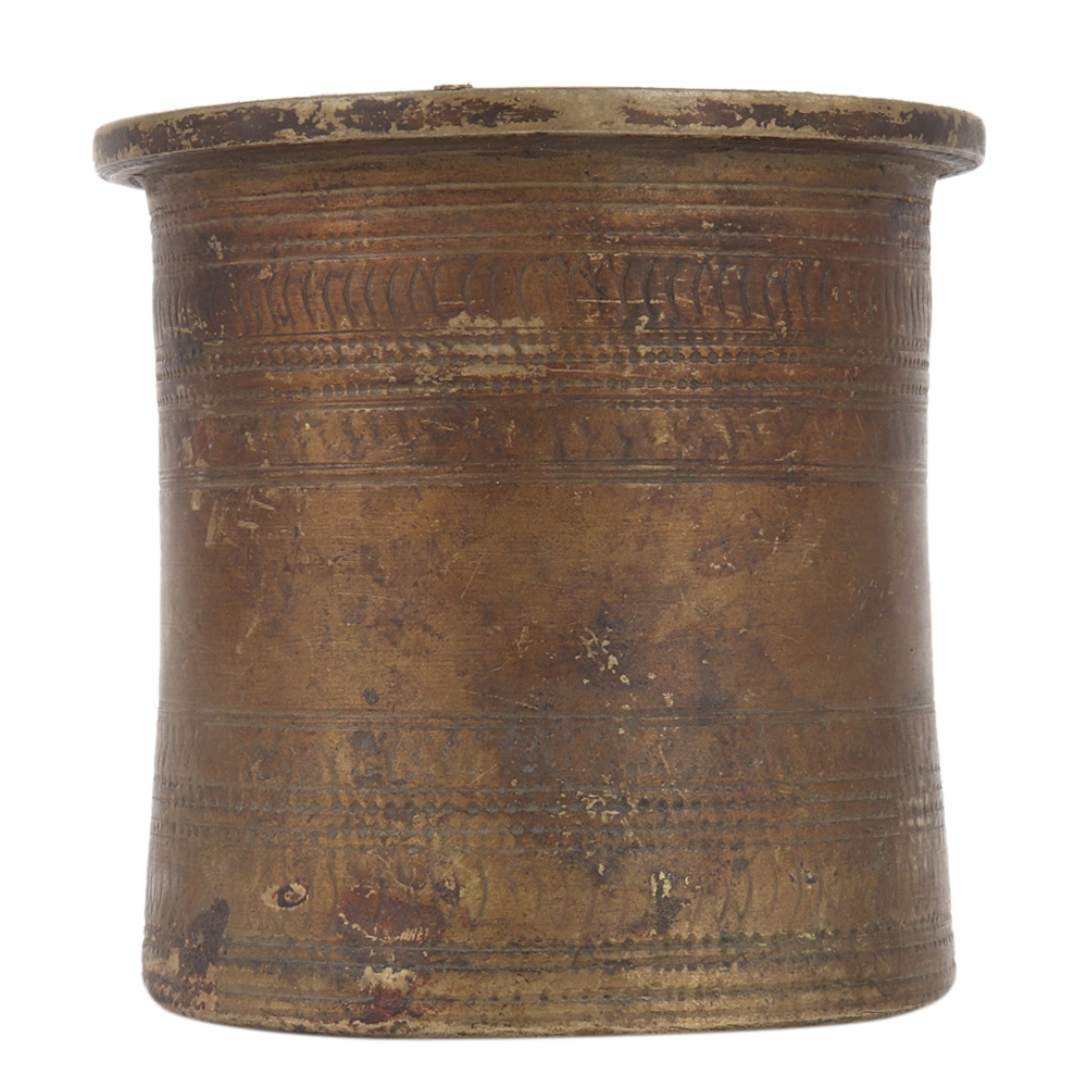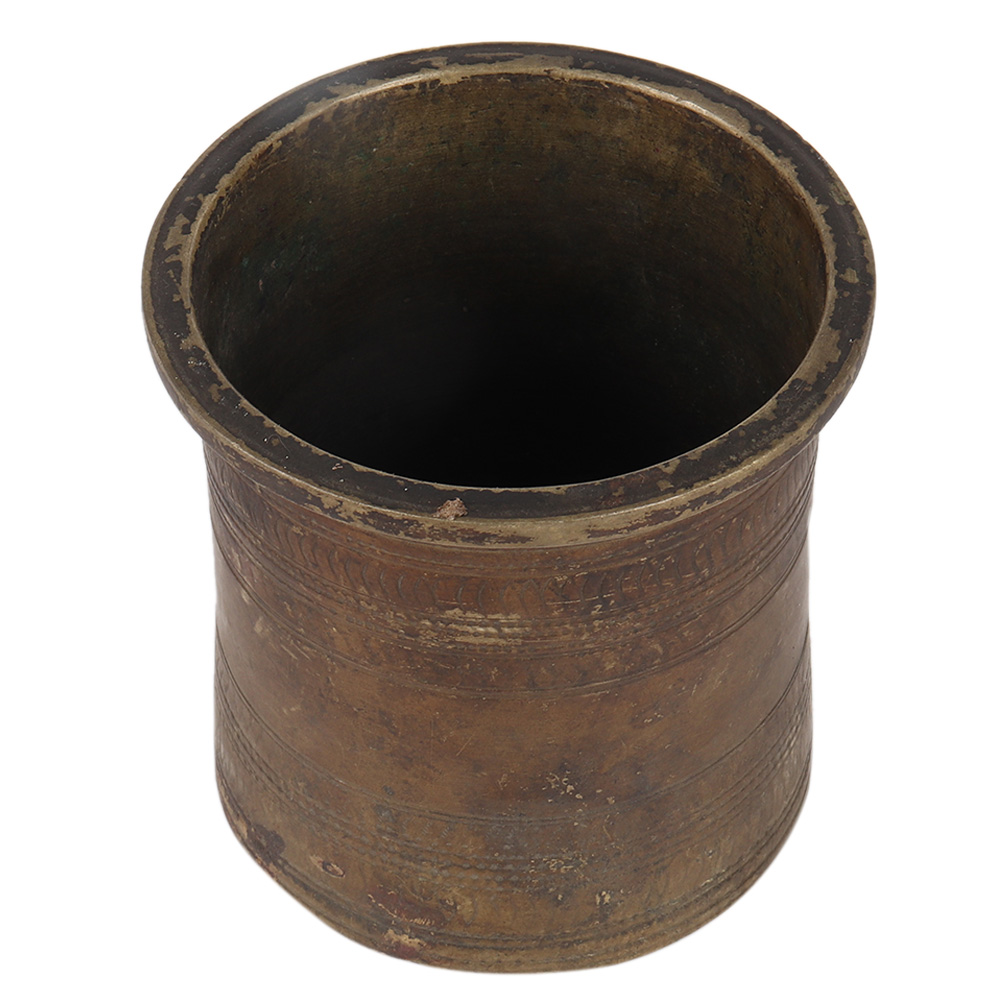A magnificent decorative shape old hindu traditional ritual brass holy water pot called panch paatra is made of pure brass metal with an old patina look. It's an excellent interior decorating item that may also be used for worship at home or as a present for any occasion.