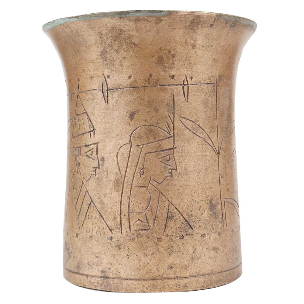Brass Panchpatra Pot Engraved Bengali Couple Wedding