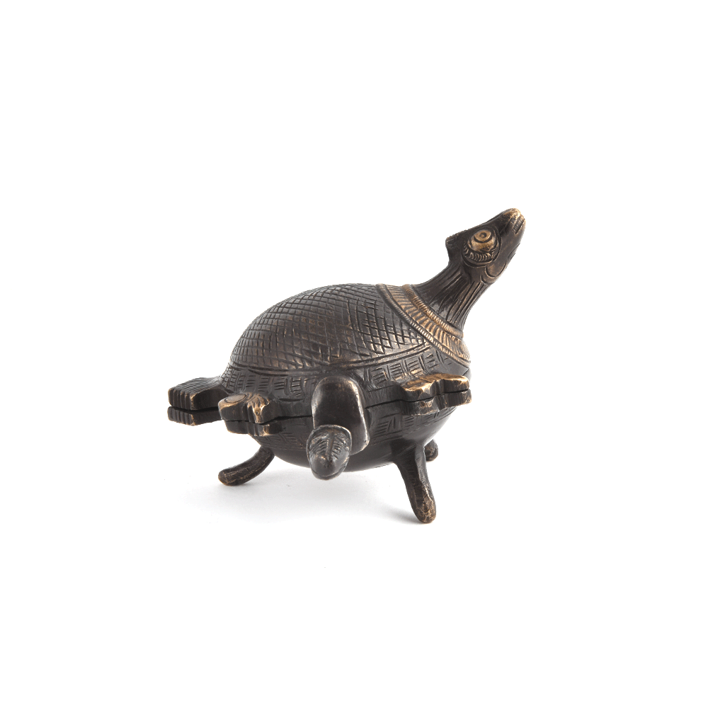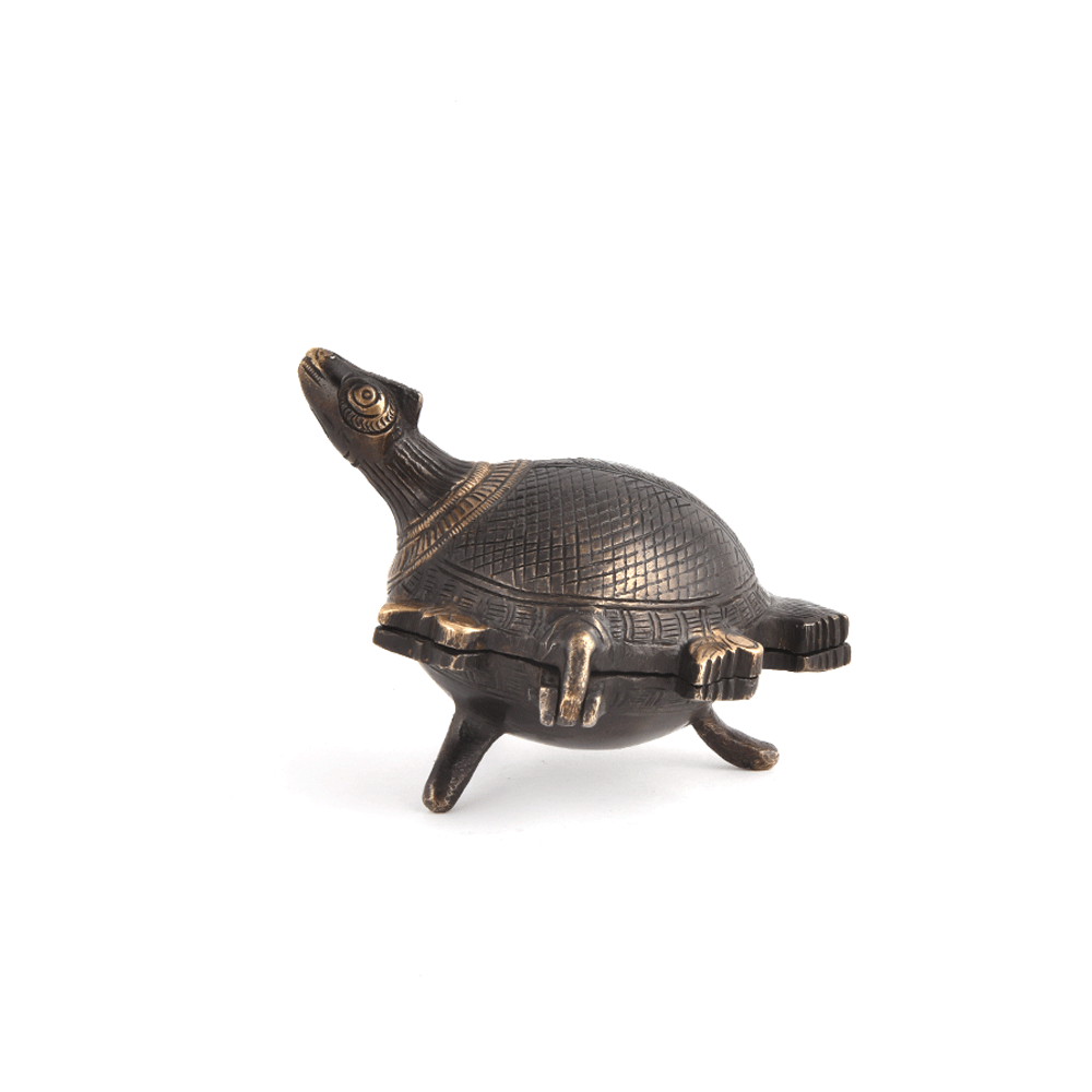 Handmade Brass Turtle Figurine with a Small Storage Box to Store Small Pieces of Jewelry Like Earrings, Rings, Nose Pins. It Can Also Be Used in the Puja and Also as a Paper Weight. Place the Turtle in the Interiors of Your House to Attract Good Luck and Positive Energy. The Box Can Be Sealed Using a Small Screw to Keep Your Belongings Safe and Intact.