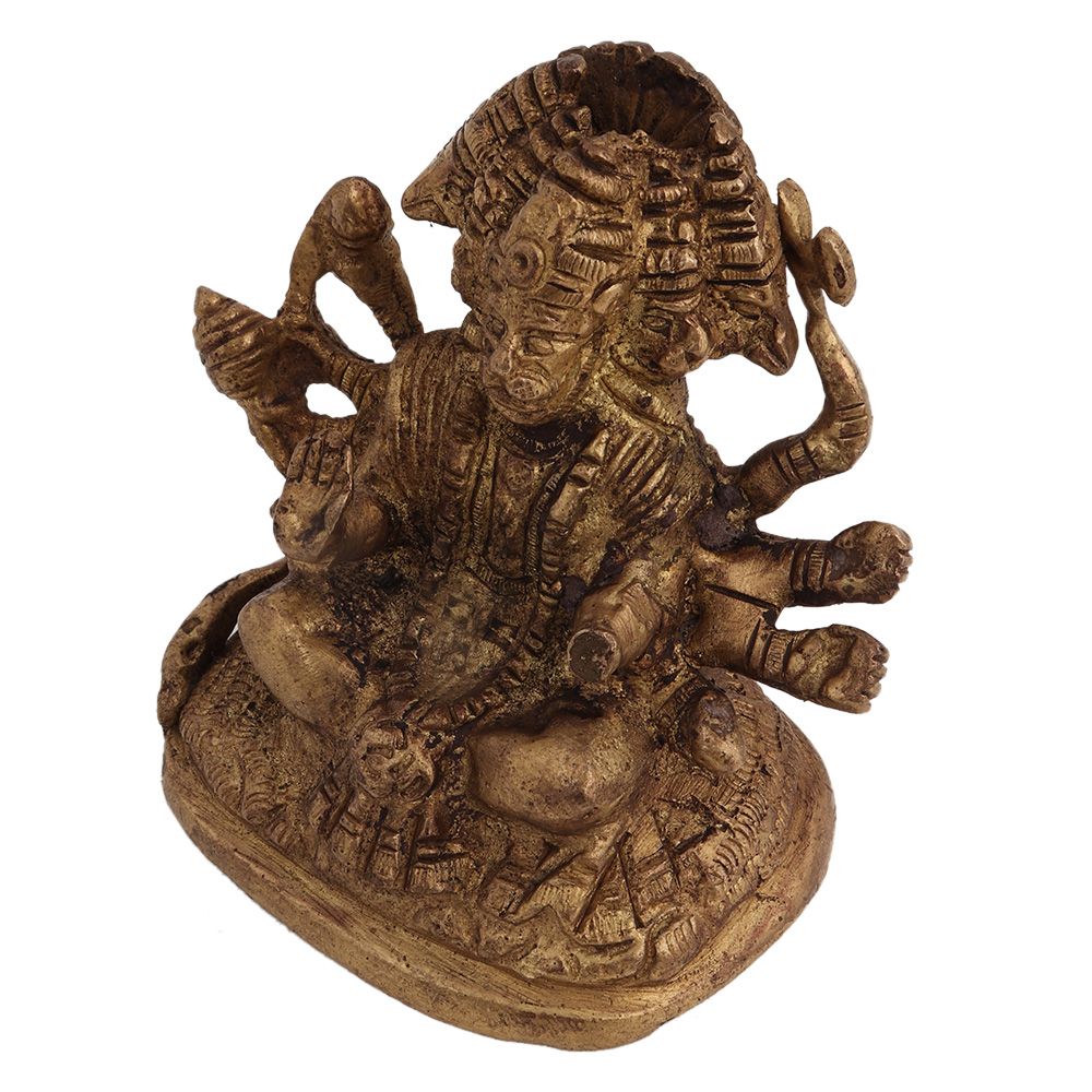Brass Patnchmukhi Lord Hanumanji Statue Hayagriva, Narasimha, Garuda and Varaha and the last face is of lord hanuman himself. A perfect home / office / living room decor and an ideal lucky gift item for your loved ones.