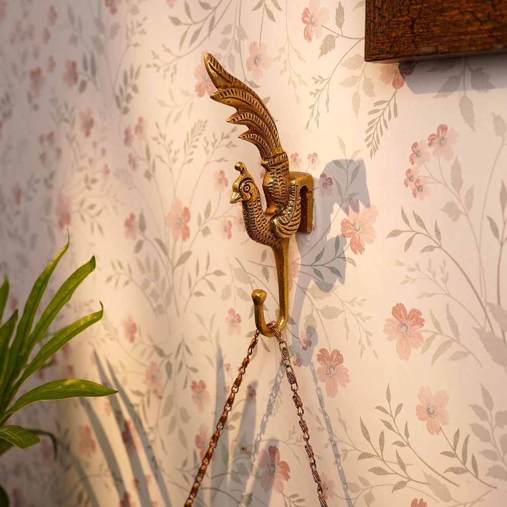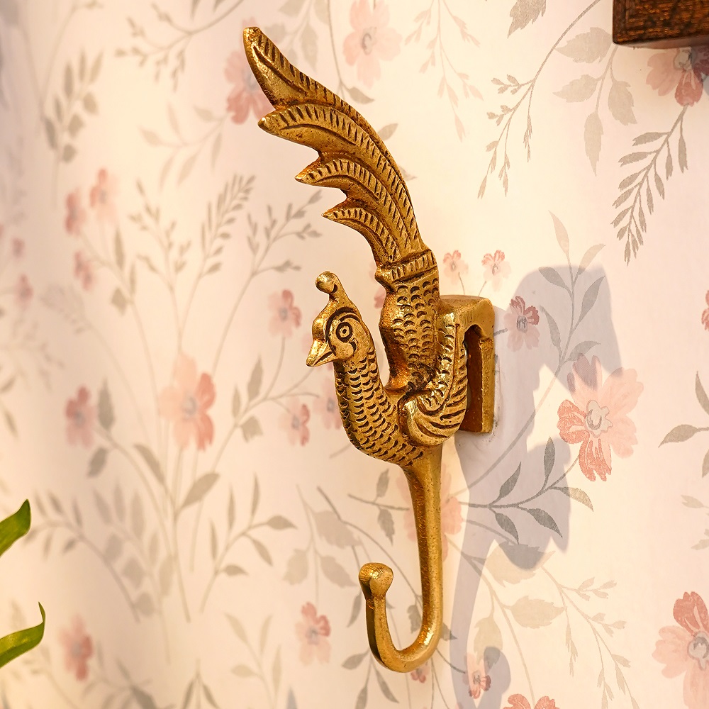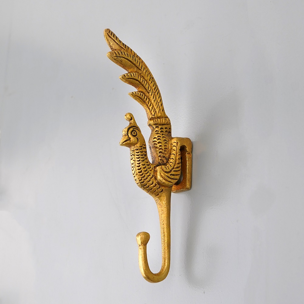 Crafted from premium brass, the Brass Peacock Coat Hooks Hanger features intricate detailing that reflects the graceful attributes of a peacock. The delicate design elements, including the peacock's plumage, infuse a sense of regal charm, making this hook not just a practical item but also a decorative accent for any room.
