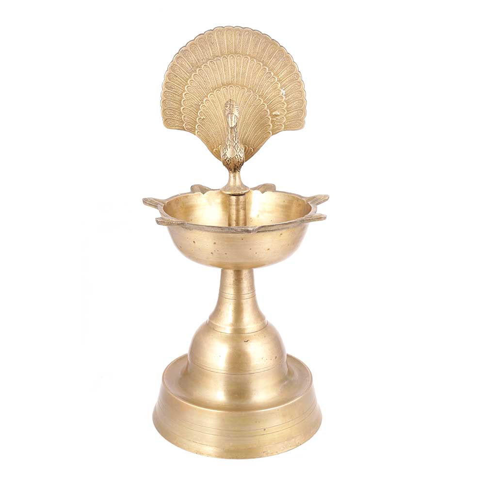 This Beautiful Diya is Handcrafted with Peacock Inside of Circle and with Intricate Designs and Patterns. It Can Be Placed of Your Pooja Room or Living Room. It is Made From Brass and is Golden in Color. a Diya, Divaa, Deepa, Deepam, or Deepak is An Oil Lamp Usually , Made From Clay with a Cotton Wick Dipped in Ghee or Vegetables Oils. You Can Us This Deepak Anywhere in Your Temple. This Item Have a Antique Look. Its Look Excellent in Your Home or Office & Best for Gift. You Can Use This Diya in Decorative Purpose.