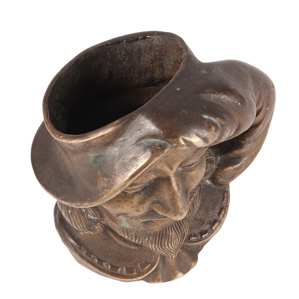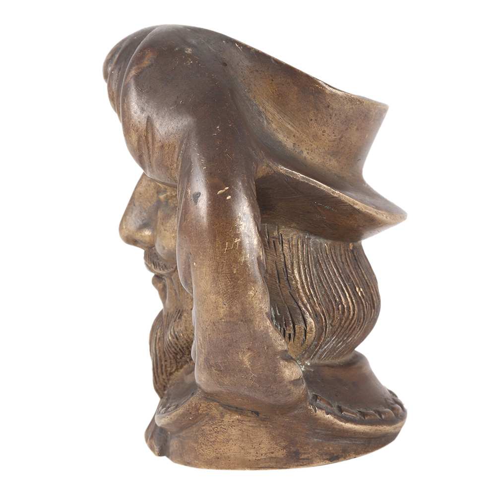 Pirate Head Pen Holder Mug is a work of art and a very intriguing pen, pencil organizer, tool holder, workplace desk adornment, study table decoration, Halloween gift, Holiday gifts, housewarming present for friends and family. It comes with a dark patina finish.