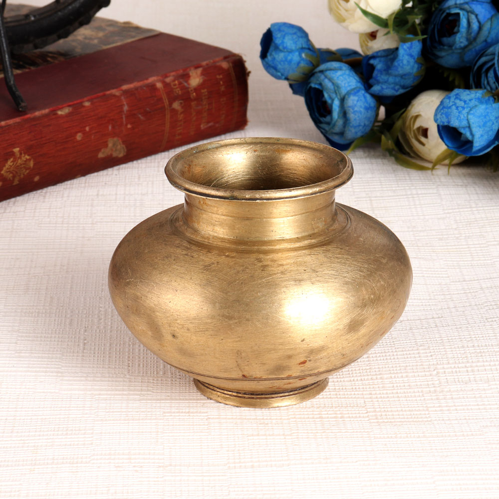 A plain lota with a shiny gold finish that leaves a long lasting impression to the interior. This handmade lota has a sturdy look and can be placed on the table or shelf to enhance the interior design. Brass water pots are used to store holy water in home and temple. It spreads positive energy in the environment when kept in the north or east direction of the house or office. Use it as a flower pot to decorate your home, office, hotel, spa or restaurant. It will be an attraction for your guests and visitors. Gift this brass lota to your loved ones on special or festive occasions.