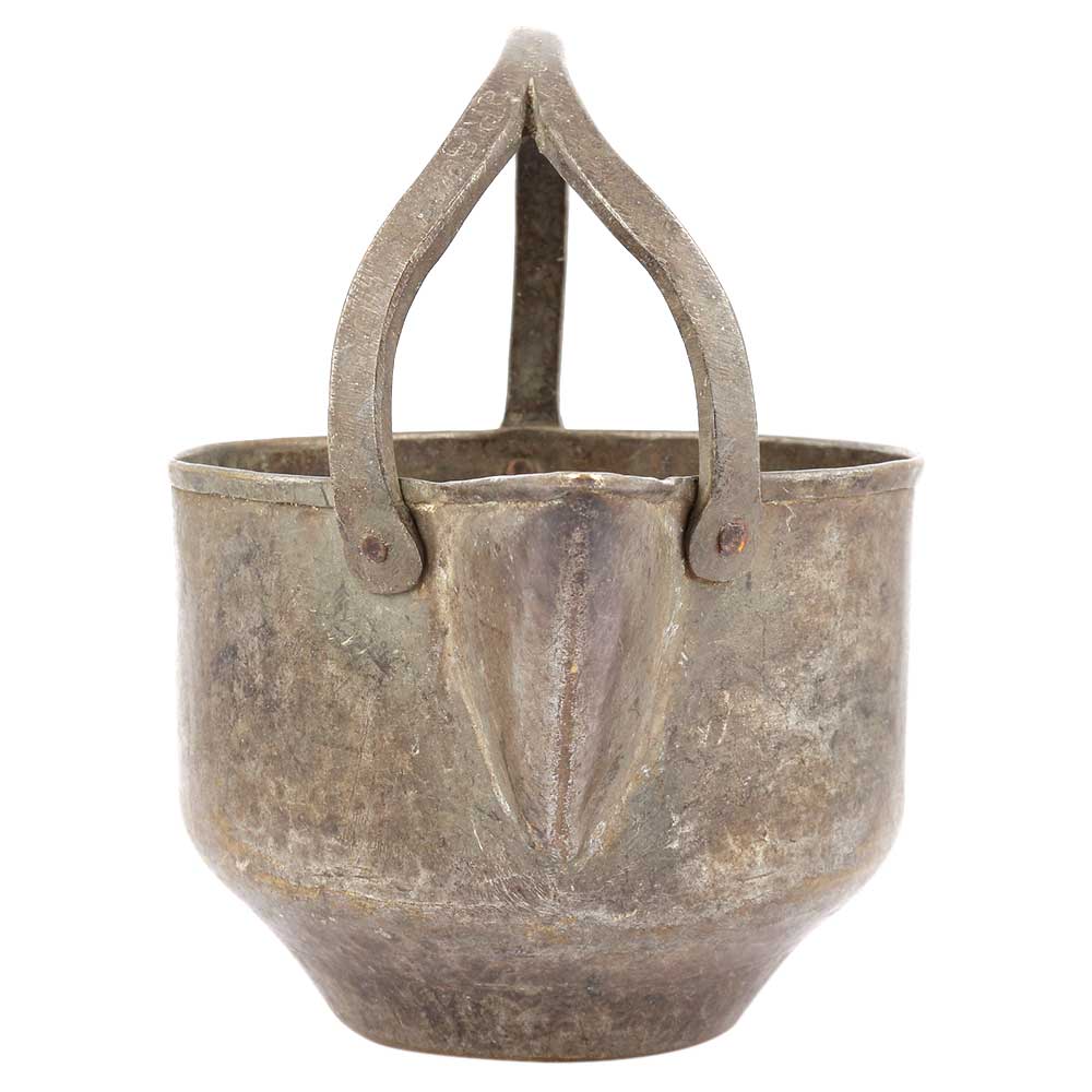 A Rather Heavy Pot with Handle is a Nice Decorative Piece. This Pot is Ideal to Hang Inside a Large Fireplace or to Place on a Hearth Filled with Pinecones or Kindling. Makes a Great Magazine Holder, Too.