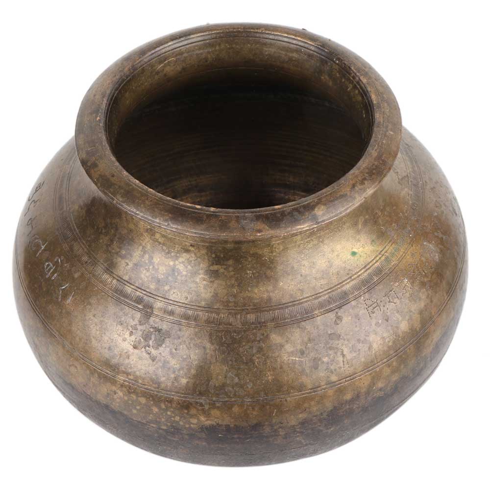 Handmade brass pot that has a broad base and small mouth . It was used for cooking and store drinking water. Use it as a showpiece, as a planter , flower decoration. Great gift for Diwali, wedding and anniversary for your near and dear ones. It comes with a lovely patina.