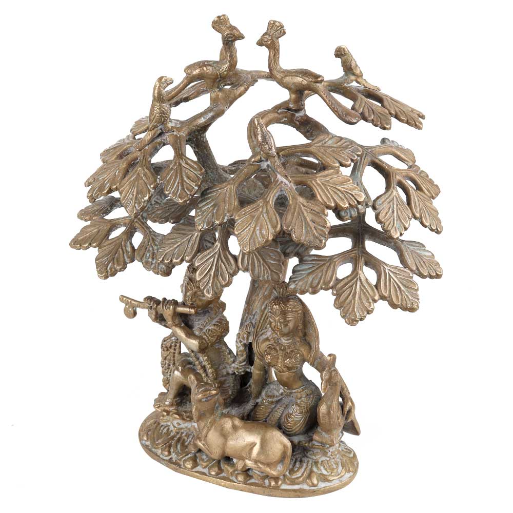 Hindu art Lord Krishna playing his favorite flute and radha holding wager pot standing under the holy Kadamba tree. An ideal decorative statue for your living room and ideal gifting statue for weddings and Denali