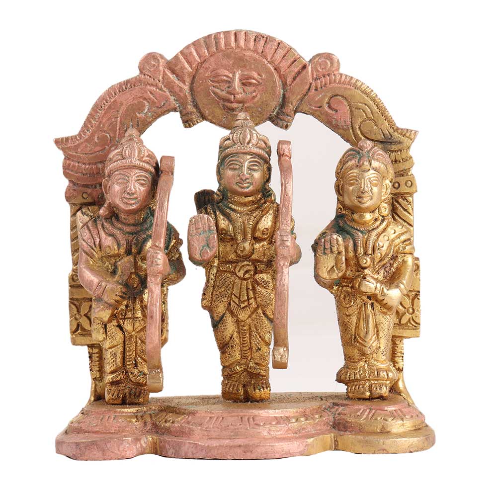 This brass statue of Ram Darbar, Lord Rama's Court, contains idols of Lord Rama, goddess Sita, brother Lakshman, and Hanuman Ji. This statue represents the marriage of a husband and wife, the brotherhood, the Master, and his Servant. This will go down in Indian history as an example of how to learn and honour these relationships. This statue is made entirely of pure brass metal. A gift for thousands of years for younger generations to see divinity and devotion.