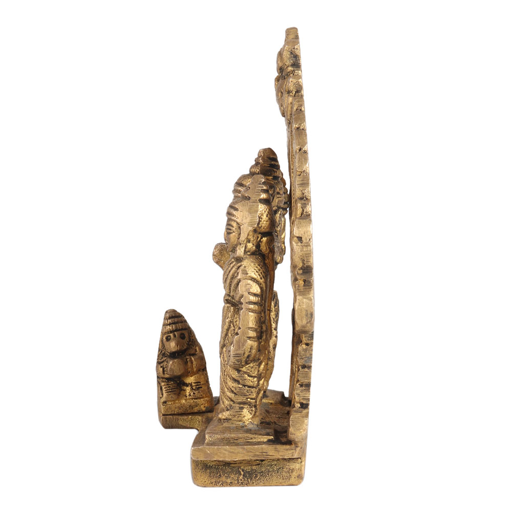 This brass Ram Darbar statue features the idol of Lord Ram, Goddess Sita, Lord Laxman and Lord Hanuman. This statue is hand carved from brass by skilled craftsmen. It has a Prabhavali behind the idols, Prabhavali is used to hold the idols in the temples and the statue. Ram Darbar represents the court of Lord Ram and is said to improve domestic harmony and happiness. Lord Hanuman is the ardent devotee of Lord Ram and can be seen in this figure. This handcrafted statue is made with intricate details so that it could be an eye catcher for your visitors at home, restaurant and hotel. Place this statue in your home temple.