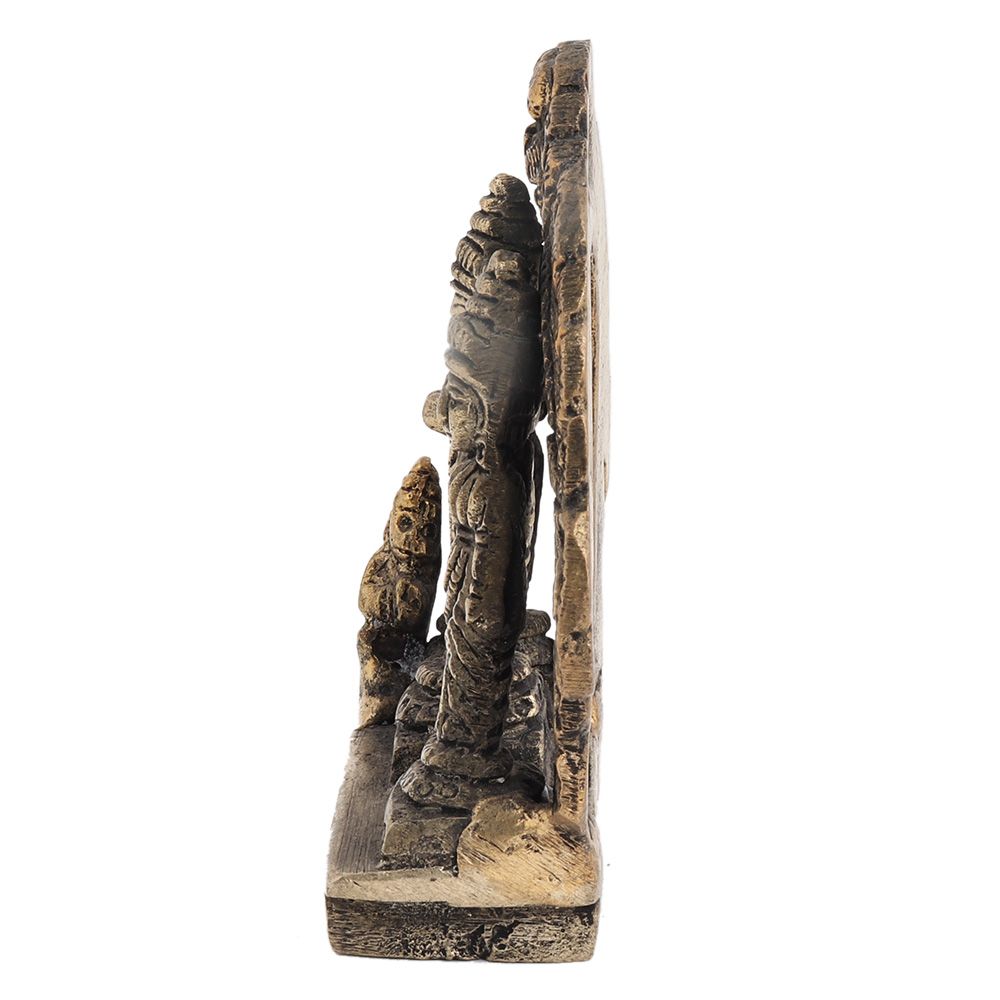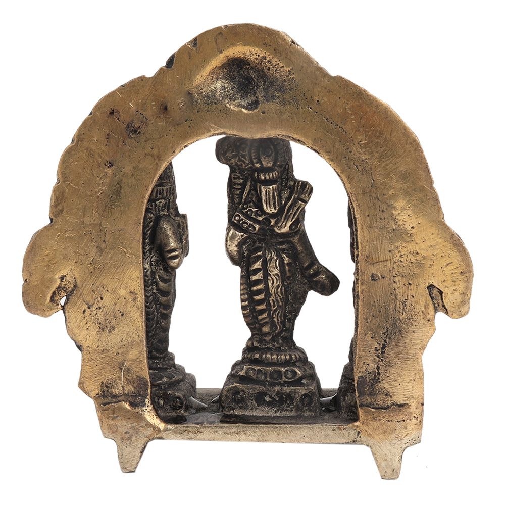 Handmade brass Ram Darbar with Lord Ram, Sitaji , Laxmaji and hanumanji sitting on his knees and folding hands.It has a complete prabhavali with a dragon head on top..Gift it o your near and dear ones on diwali,weddings, inauguration ceremony, in schools and colleges, as a Showpiece etc.