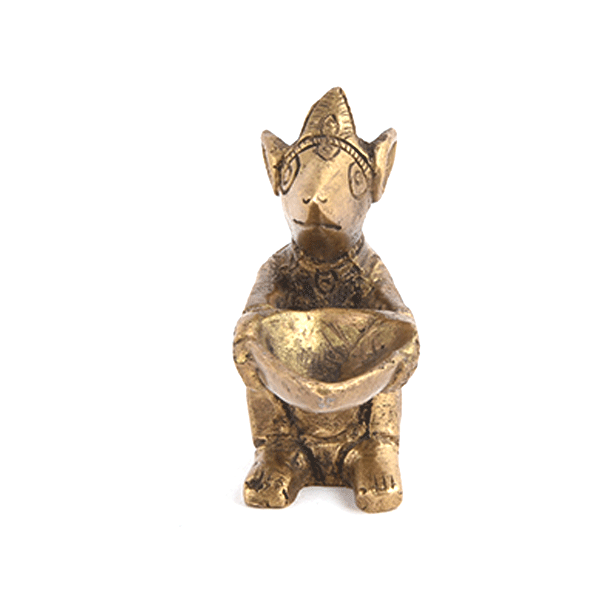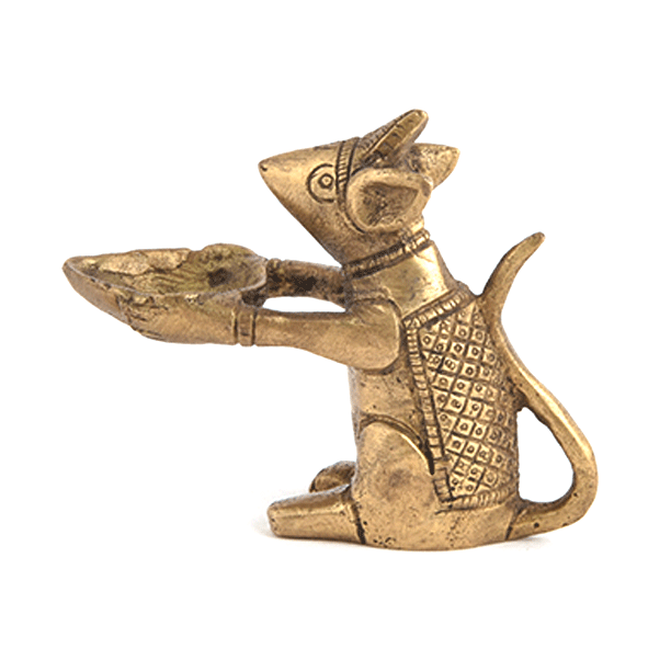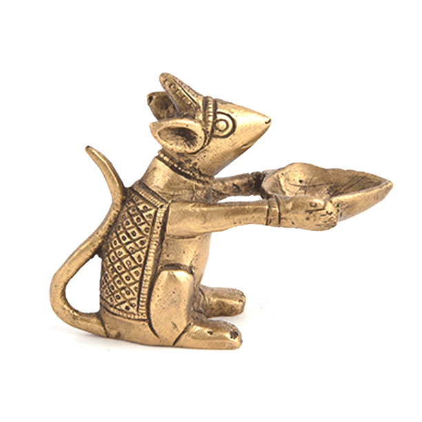 A Very Cute Engraved Rat Holding a Small Diya Which is Also Made of Brass. This can be Use as a Showpiece on the Display Unit. Use It During Pooja Fill It with Oil and Put a Small Cotton Wick Light a Diya Once Every Morning and in the Evening. It Also Makes a Lovely Gift for Relatives and Friends.