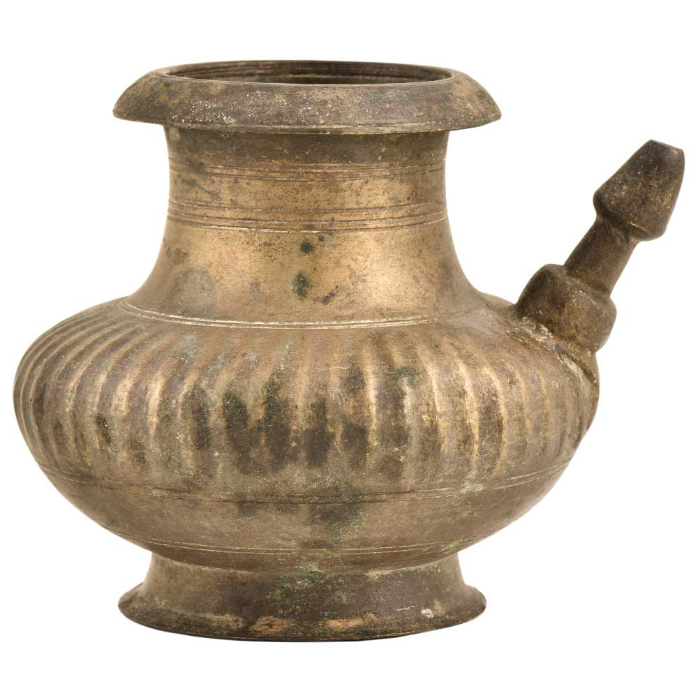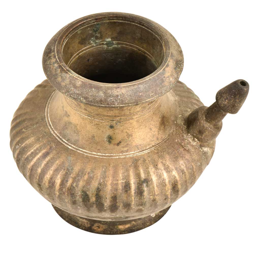 Brass Ribbed Bulbous Form Holy Water Pot With Spout