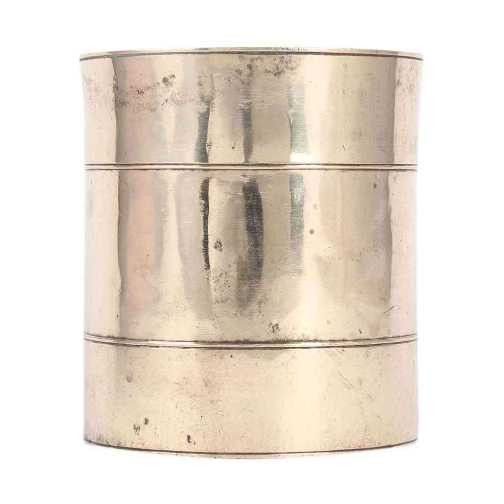 Rice grains are measured in this handcrafted brass container or cup. It's also employed in many kinds of family rituals and holidays. The shape and design are traditional and antique. Local craftspeople handcraft the item out of pure brass.