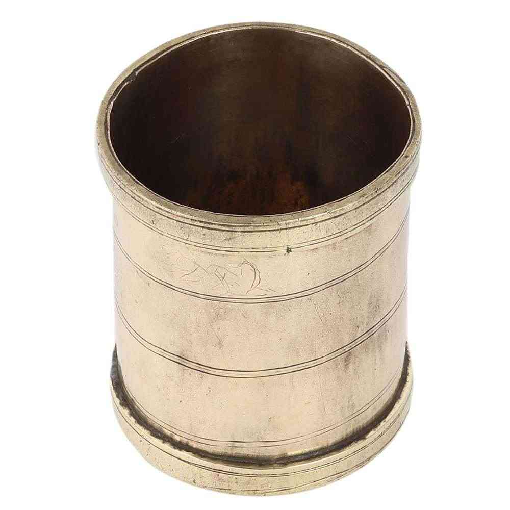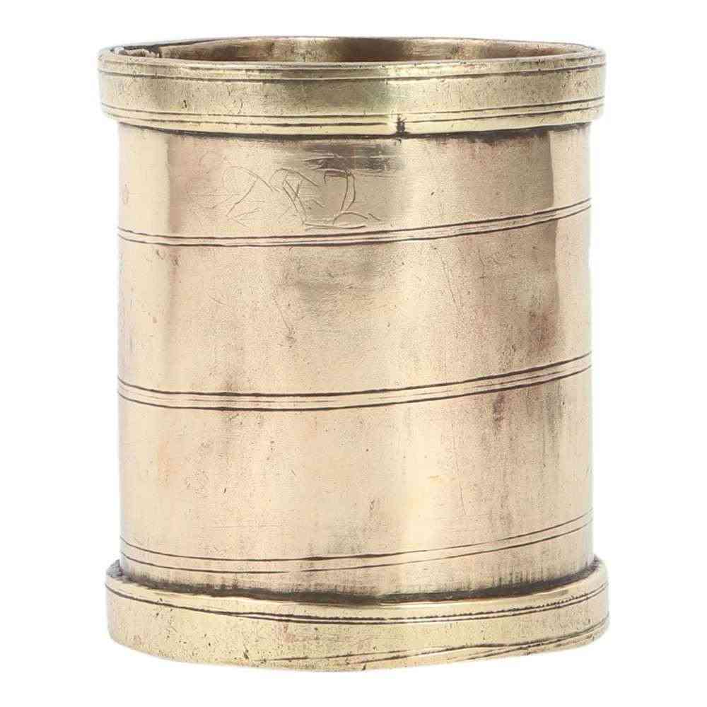 Old traditional rice or wheat measuring cup is made up of solid brass with a golden sheen. It can also be used as a nice and excellent decoration or given as a present to our loved ones. It has a closed bottom and a cylindrical shape.