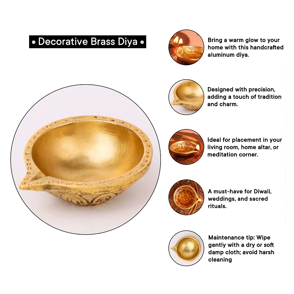 Brass Round Shaped Diwali Oil Lamp Diya is a beautiful gift for Diwali, house warming and other Occasions and Ceremonies, an ideal showpiece for your home interiors. An ideal worship lamp for deity and idols and an ideal gift for friends and family.