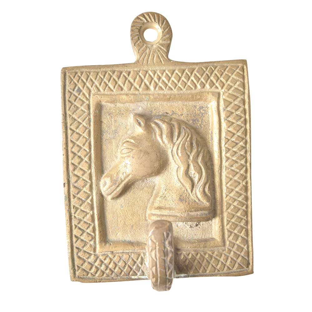 Solid Brass Wall Hook with Horse Head with A Rustic Patina. Presenting You A Solid Brass Wall Hook Hanger with Horse Face Embossed on It and Beautiful Carving At the Sides. This Hanger is with Two Functional Hooks to Hold Your Keys or Knick Knacks.
