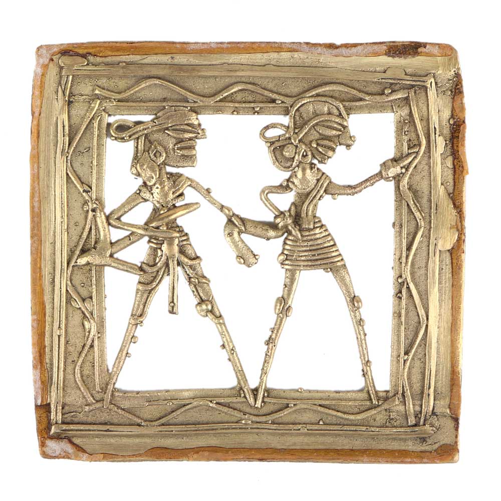 This handmade brass rural Couple Dhokra Art hanging brighten up the interiors of your home, hotels, restaurants and other places . Ideal gift for Diwali, wedding, new venture, house warming etc.