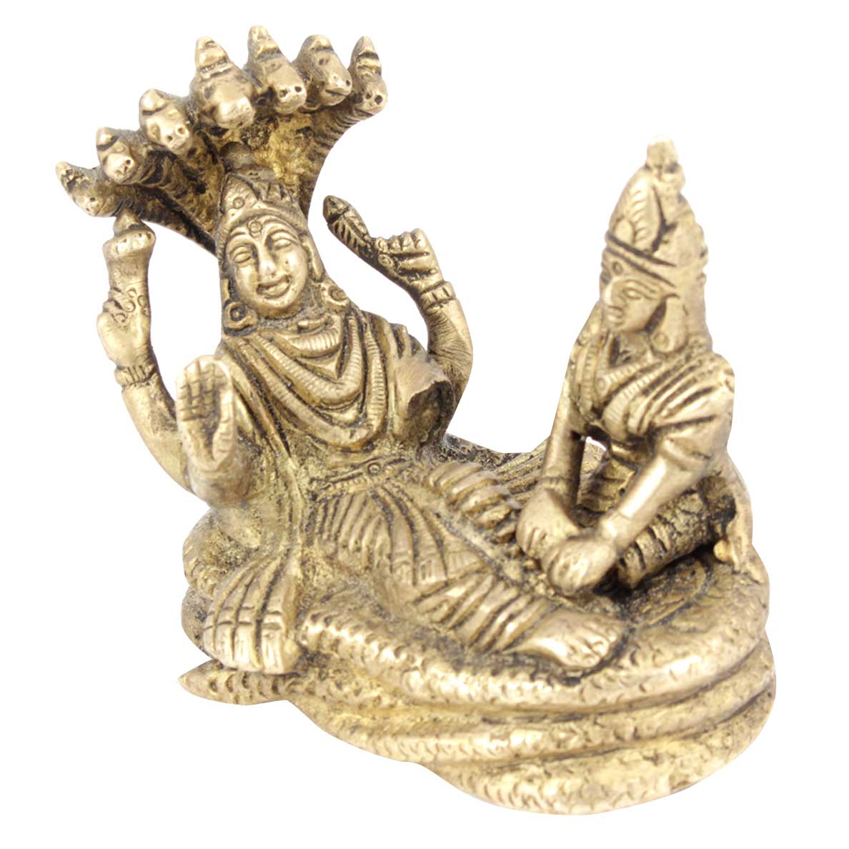 Shesha (The Sheshnag) is Generally Depicted with a Massive Form That Floats Coiled in Space, or on The Ocean of Milk, to Form the Bed on Which Vishnu Lies. Sometimes He is Shown as Five-Headed or Seven-Headed, One of the Forms Show Him Reclining on the Body of the Primeval Serpant Sheshanaga in the Oceanic Waters Along with His Consort Goddess Lakshmi Massaging His Feet.
