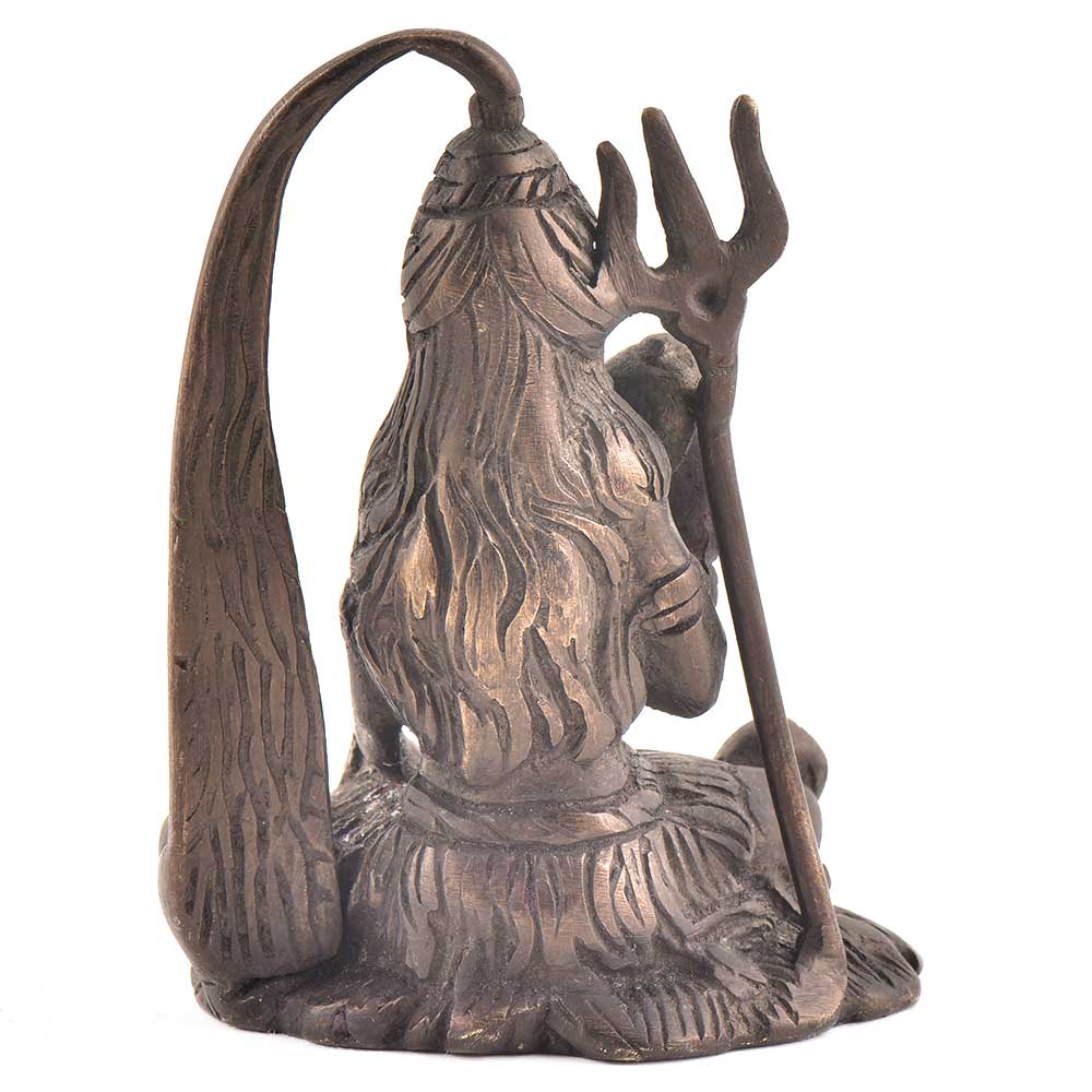 This is a brass Statue Of Lord Shiva third of the lord trinity and known as Shiva ( the destroyer). He is seen with eyes closed in meditation offering blessing from one hand and the other resting on his knee.The tridet is placed behind his back and river ganga is seen coming out of lord shiva's hair with cobra resting around his neck. A useful home decor and gifting statue.