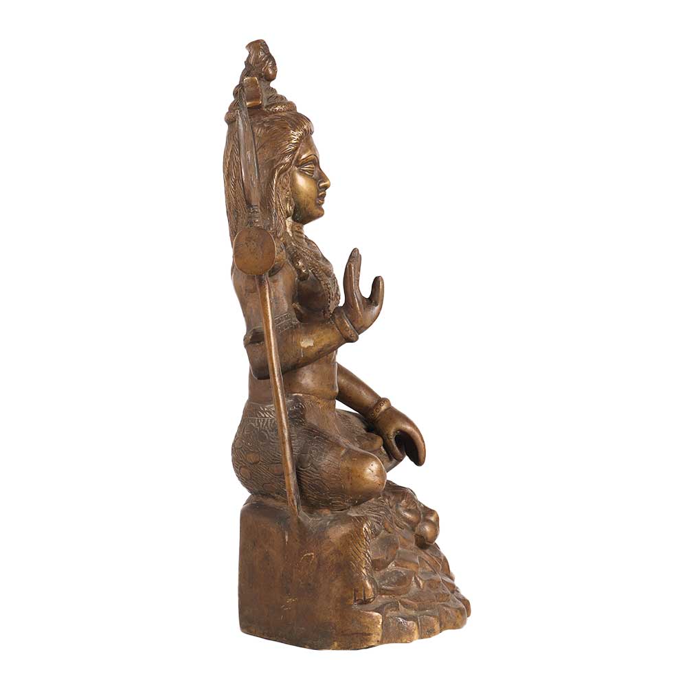 Buy an exquisite statue that depicts Lord Shiva, one of the most revered deities in Hinduism, seated in a serene and peaceful posture. The statue is made with high-quality craftsmanship and finished in a dark brown hue, creating a stunning visual impact. It is an auspicious addition to any space, including prayer rooms at home, office, restaurant, hotel, cafe, or shop, and is perfect for decoration and collection. The intricate detailing on the statue adds to its charm, capturing the essence of Lord Shiva's personality and teachings. Lord Shiva is known as the destroyer of evil and the transformer, and his presence can help create a positive and peaceful environment. It can be used as a focal point for prayer and meditation or as a decorative element to enhance the aesthetic appeal of any space. Gift this incredible statue to your loved ones on special, festive and auspicious occasions.