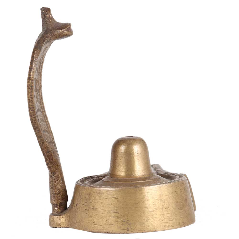 This brass Shiva Lingam idol is intended for practicing worship at home or simply adorning your residence in the Hindu style. The lingam is a Hindu deity Shiva depiction that is utilised for temple worshiping. The linga is viewed as a representation of the power and power of God, Shiva, in traditional Indian society. The lingam is frequently depicted accompanying the yoni, a goddess or Durga, female creative spirit. The combination of lingam and yoni symbolises the "inseparable two-in-oneness of male and female, the silent place and access to updated through which all life emerges."