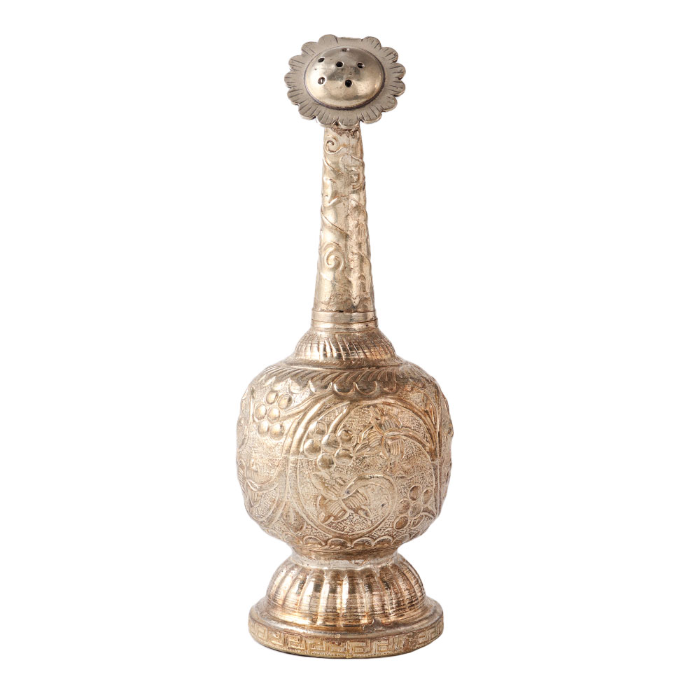 Attardani and eitradani are other names for gulabdani made of brass with silver finish. The artistically executed work on the attardani emphasises the big welcome gesture. The pooja room can be filled with the fragrance. The silver-plated gulabdani is elegant, exquisitely polished, strong, and long-lasting. It is employed for all pooja ceremonies for numerous auspicious occasions, including holi, dhanteras, diwali, and many more. The attardani on top has a flower shape, making it the ideal object to have in the pooja room. This also improves the design of your home.