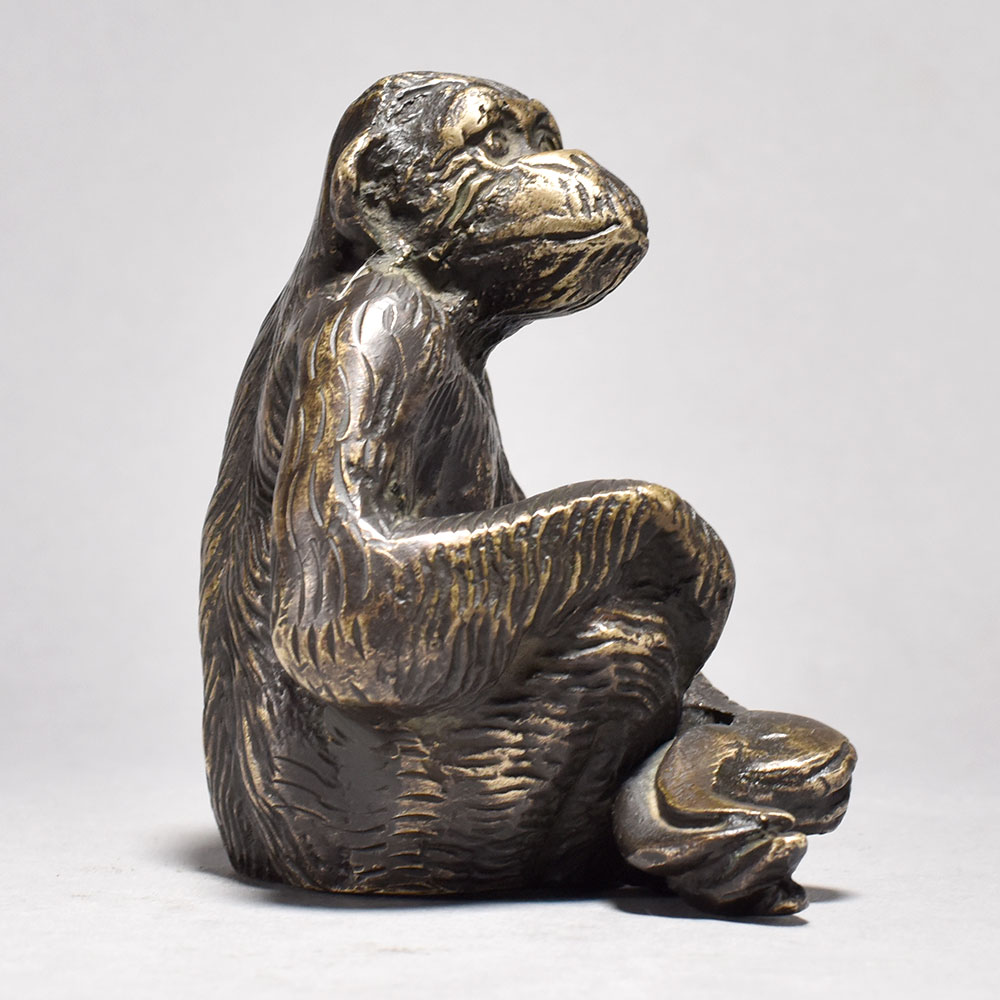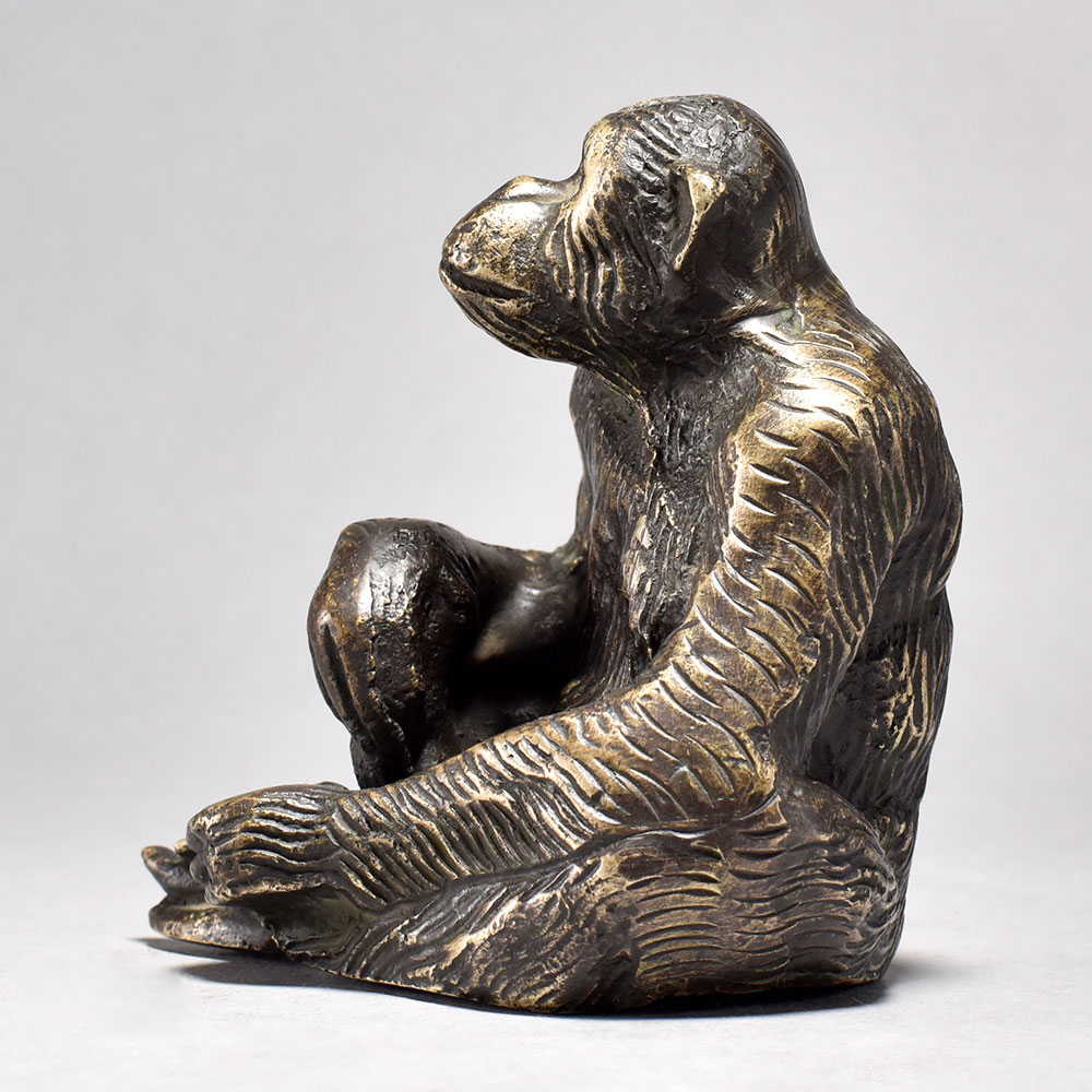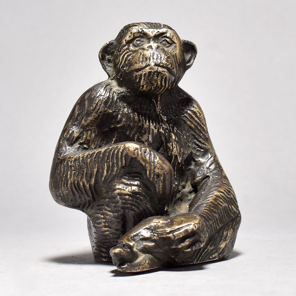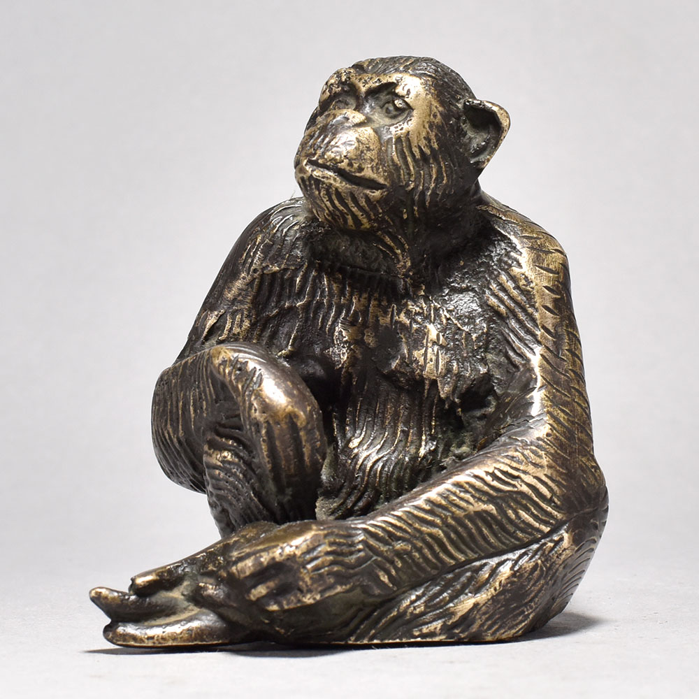 Elevate your home decor with the regal presence of this sitting brass chimpanzee figurine.This brass chimpanzee figurine is a testament to the beauty and intelligence of our primate cousins. Its intricate, lifelike details and warm, metallic finish bring an air of sophistication to any living space. Whether placed on a bookshelf, side table, or mantle, this distinctive piece will captivate guests and elevate your home's aesthetic. Bring the wonder of the wild into your world with this stunning brass chimpanzee sculpture. Crafted from high-quality brass for exceptional craftsmanship Showcases a chimpanzee in a thoughtful, seated pose Inspired by the rich artistic traditions of England Makes a striking centerpiece or accent piece This unique handcrafted piece is a testament to traditional artistry, blending functionality with beauty and making it a treasured collectible for years to come. This unique handcrafted piece is a testament to traditional artistry, blending functionality with beauty and making it a treasured collectible for years to come.