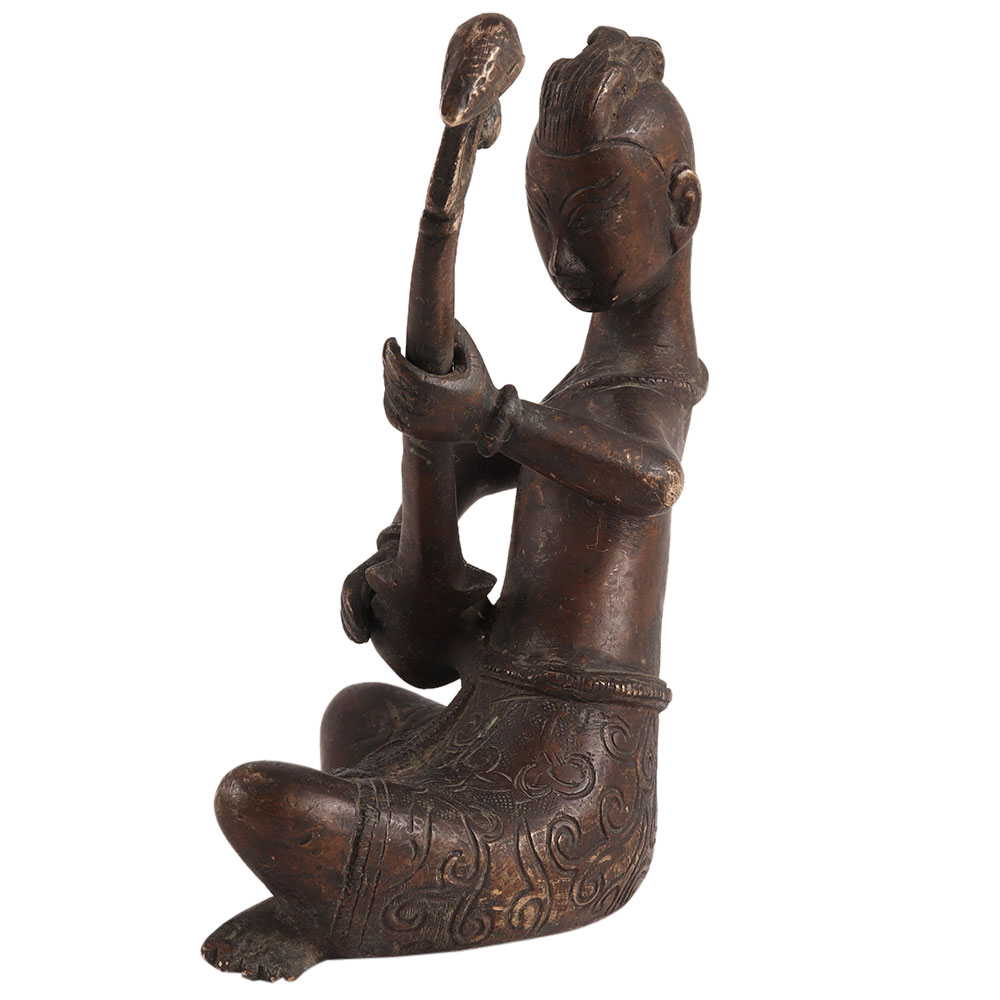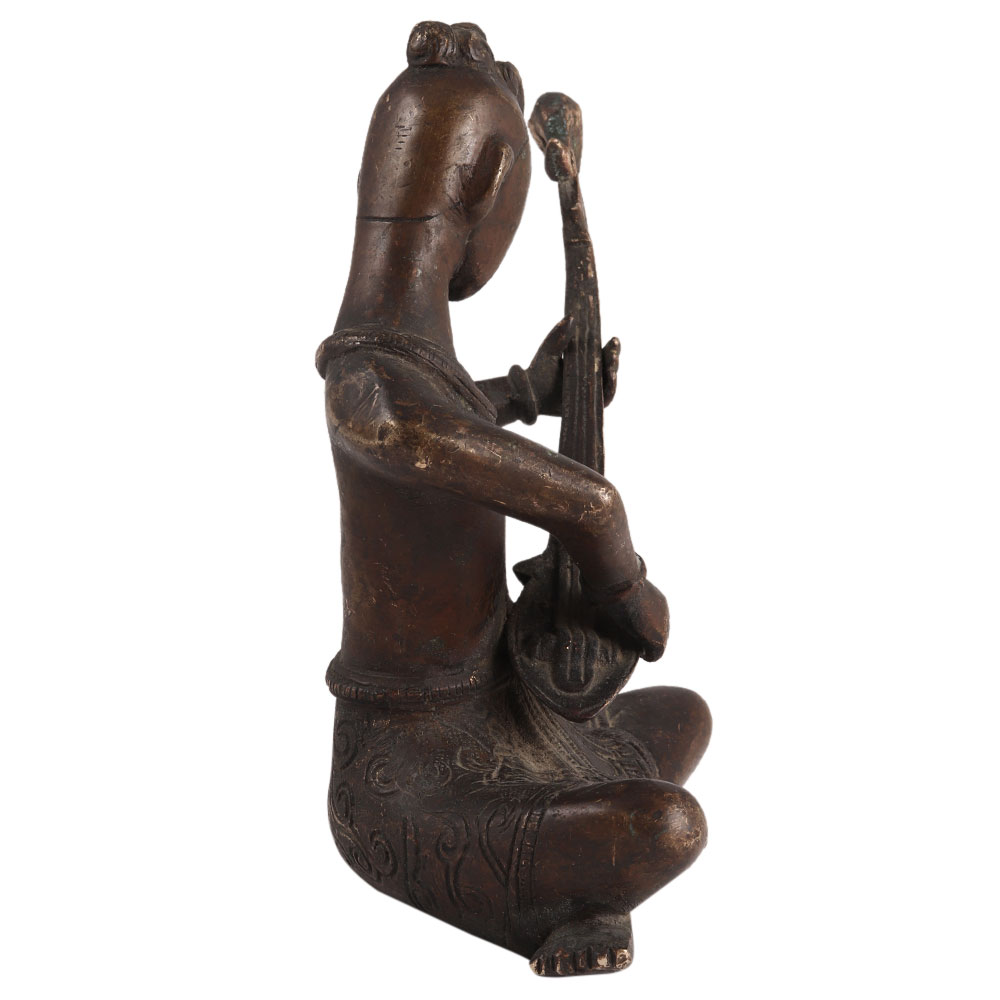 This elegant and lovely old brass lady playing Veena statue is made of strong brass for long-lasting use. This one-of-a-kind accent piece adds a touch of luxury to your home. The Veena is a pulled stringed instrument from ancient India that is primarily used in Hindustani classical music and Carnatic classical music. Perfect for gifting your friends and family.