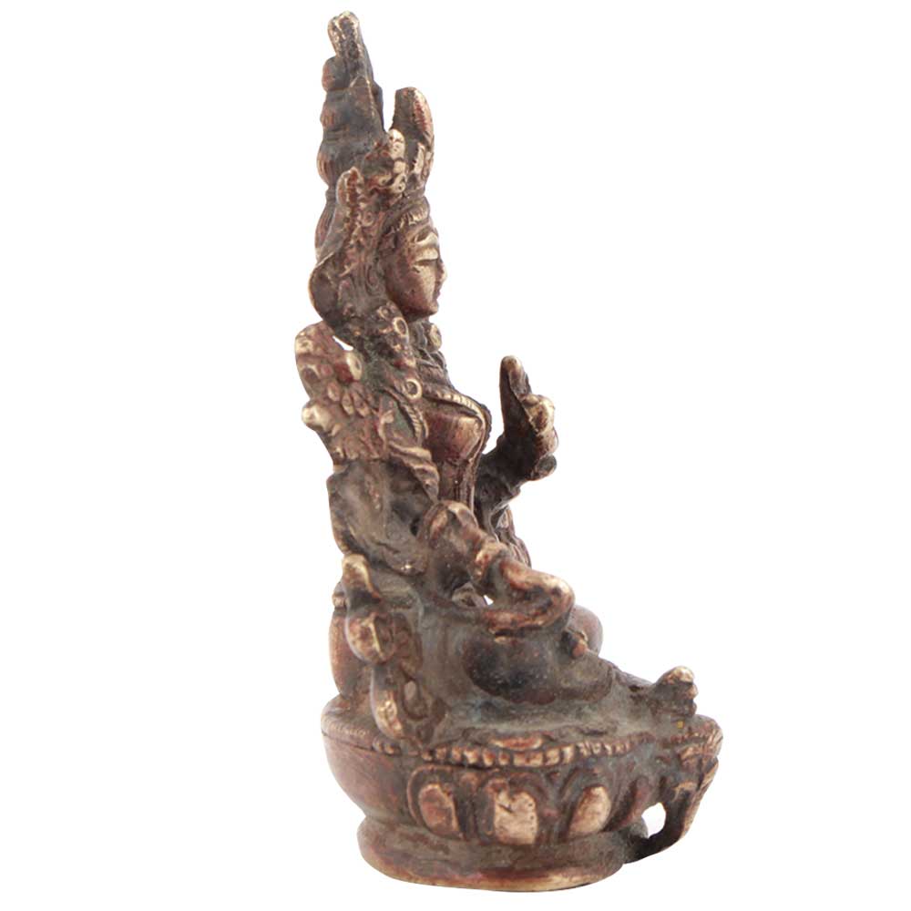 In This Sculpture Tara is in Her White Form in Her Left Hand She Hold a Lotus, a Symbol of the Mind'S Purity. Her Right Hand is Stretched Outward in The Varada Mudra with Her Palm Open Facing Downwards in a Gesture of Granting Boons to Her Devotees. Her Left Hand is Held Up in The Vitarka Mudra of Teaching in Between the Tips of Both Her Fingers is the Beginning of the Stem of the Flowers That Flank Both Sides of Her Compassionate Face.