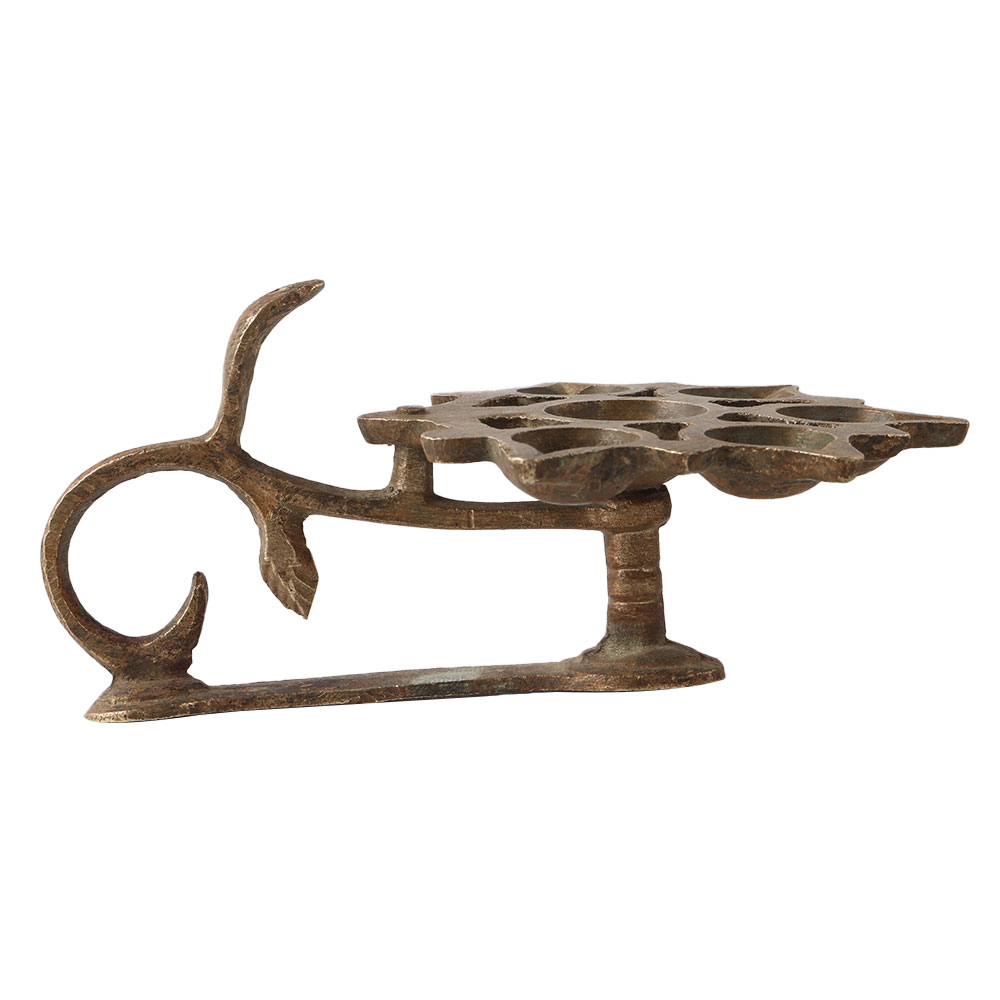 This handcrafted brass oil lamp or diya with 6 wicks was created by skilled tribal Indian artisans, and it was frequently used in worship spaces such as puja rooms. Today, it will give any place a major bohemian flavor! To make a statement, group fascinating brass pieces together, or display one alone to take centre stage on a side table. It can be artistically combined and matched to produce a gorgeous centerpiece arrangement, coffee table accent, or hallway accent.