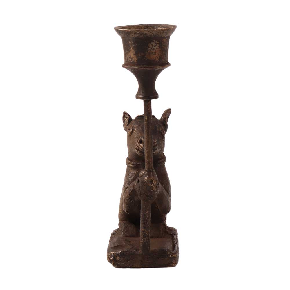 Add an incredible brass candle stand to your vintage collection. A brass squirrel statue holding a candle stand in folk art. This handcrafted artefact is carved from the best quality brass that will match your interior. Place this exquisite piece on your table, study desk, dining table or altar to attract your visitors or guests. Its alluring design will set it apart from other brass candle stands and add aesthetic flair to your interior. A beautiful collectible and incredible gift for your friends, family and acquaintances on any festive and special occasion.