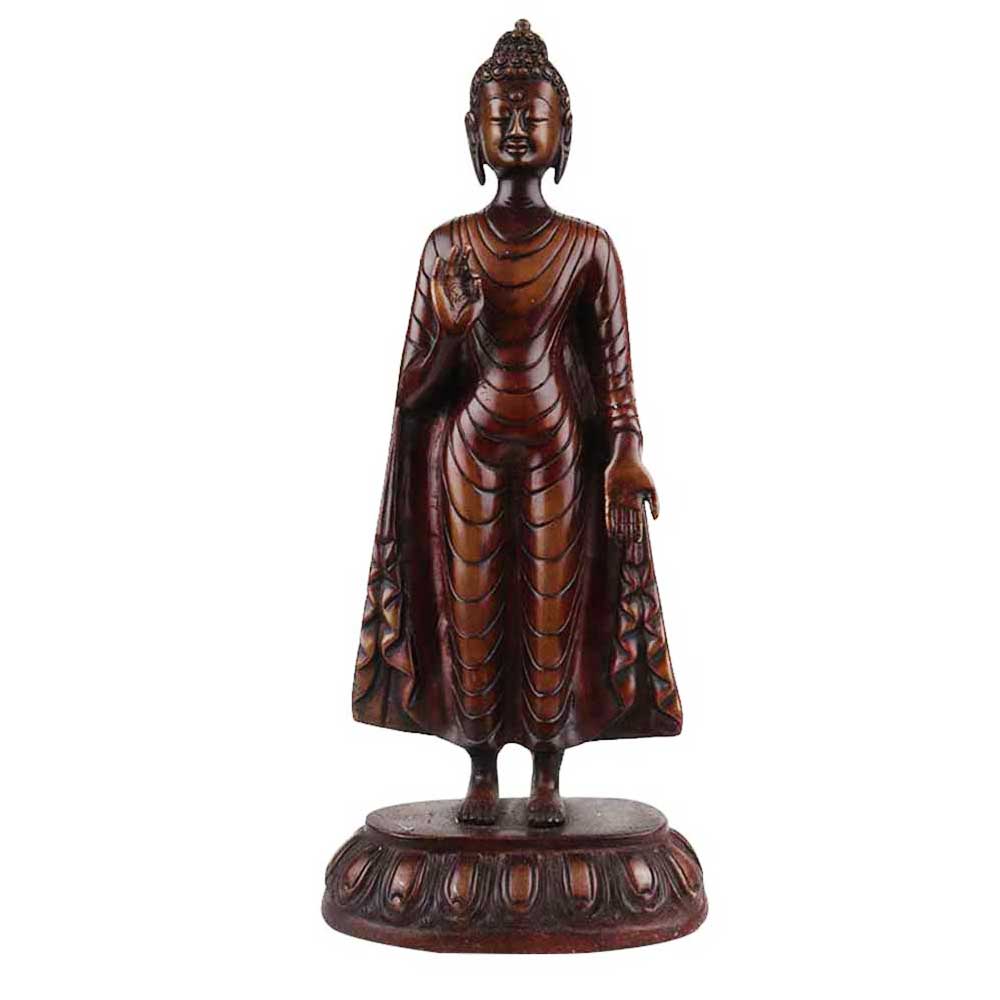 Handcrafted brass statue Standing Gautama Buddha in the Vitarka Mudra of Teaching After Enlightenment . Gift it to your near and dear ones on Diwali, New year, birthday and house warming. A lovely corporate gift and also a showpiece and decoration for your office and school reception area.